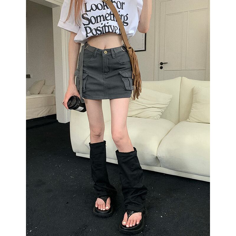 スパイスツーリングスタイルスカート夏2023新しい耐光ハイウエストaラインデニムバッグヒップスカート女子学生 ハイウェスト サマー 夏物 missk11103648753