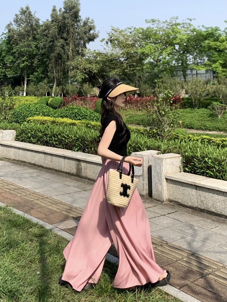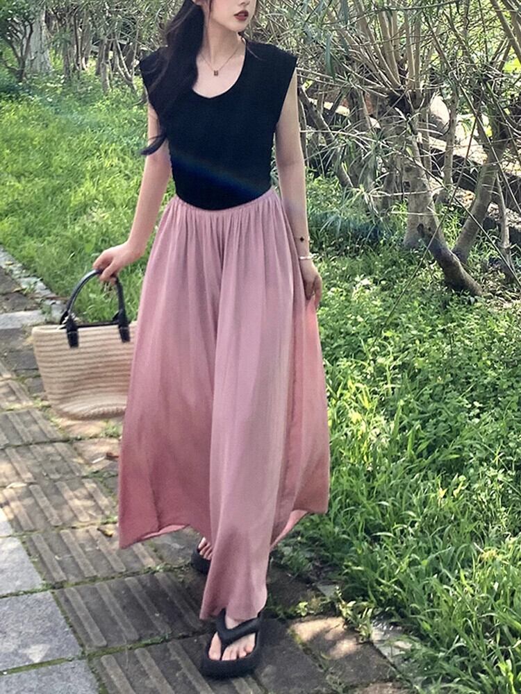 弾性ウエストヒラヒラキュロットレディース夏の新しい気質ハイウエストカジュアルパンツ薄部9点ドレープワイドレッグパンツ ハイウェスト エラスティック 伸縮 サマー 夏物 ワイドパンツ missk14385959575