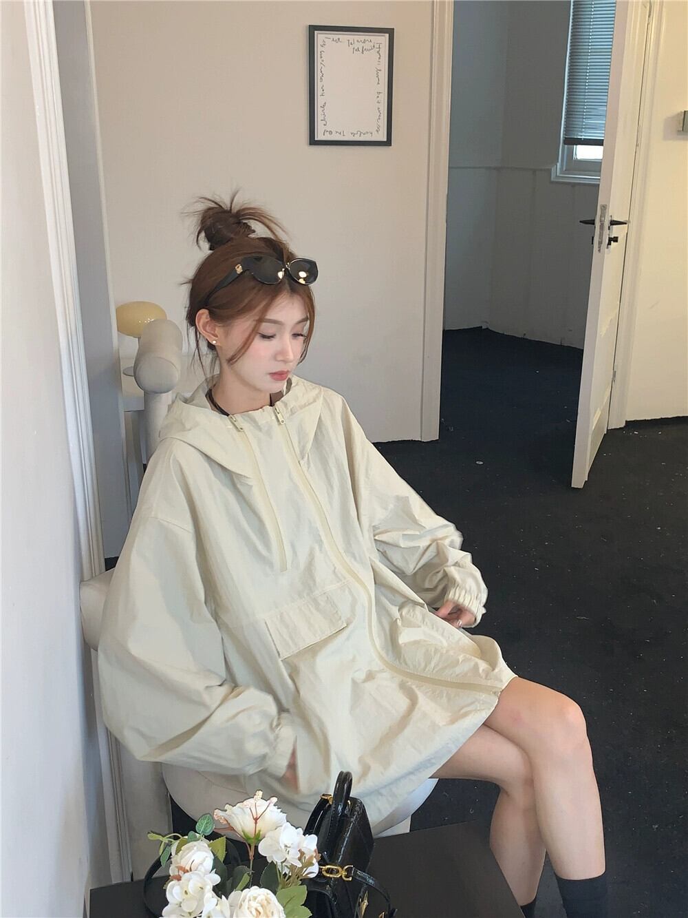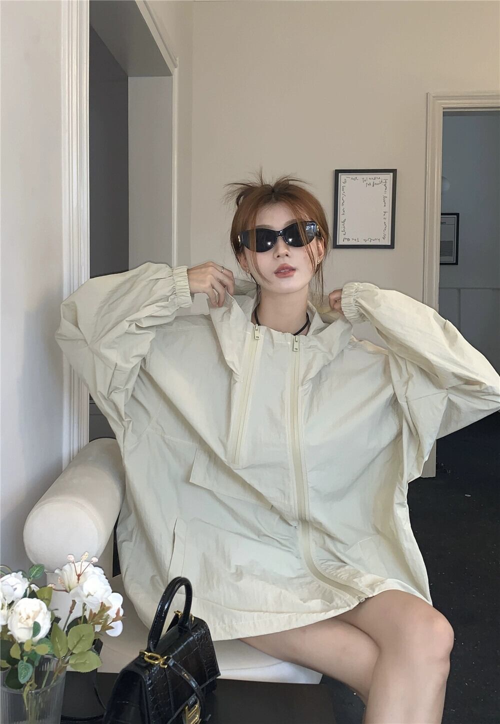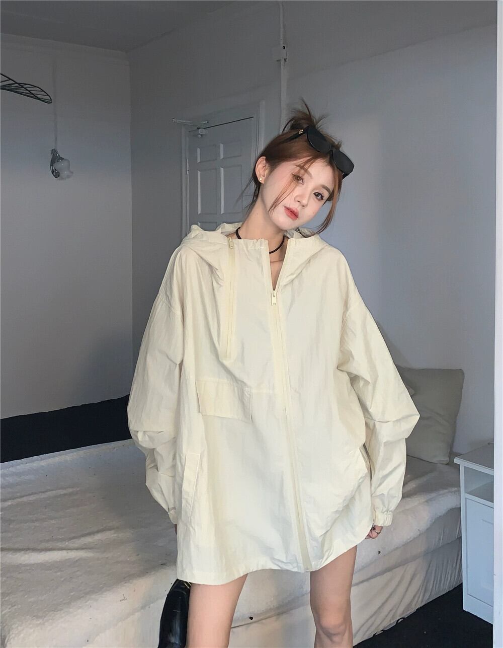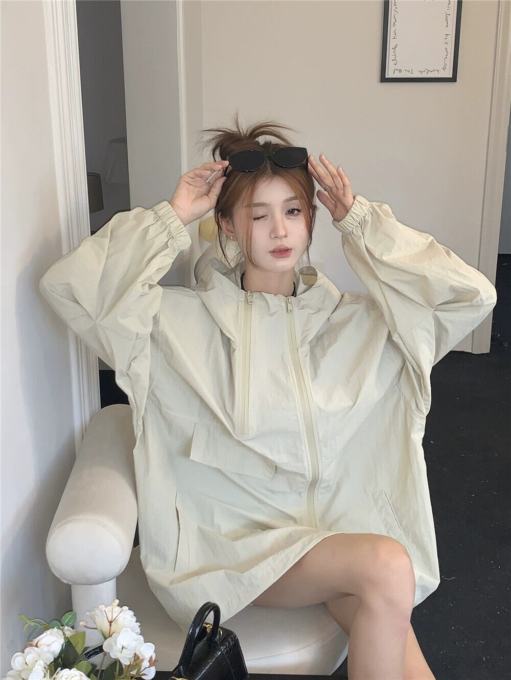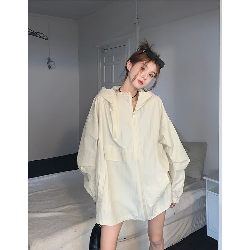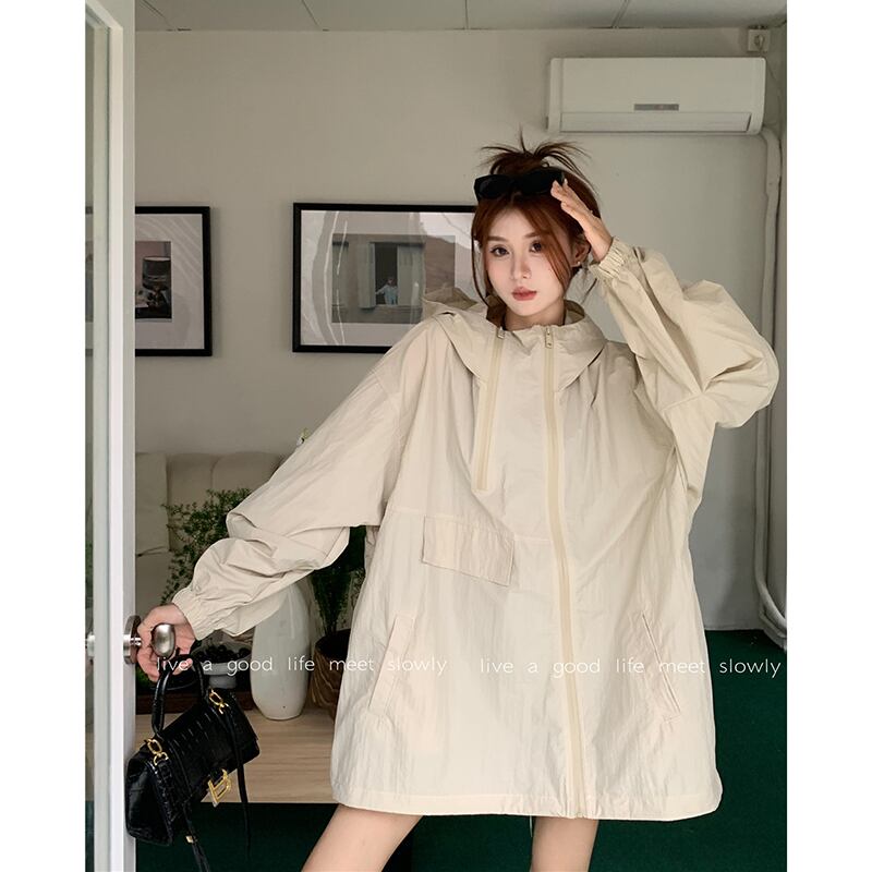 ランタンスリーブ日焼け止めツーリングジャケット女性春バージョン 2023 新しいフード付きルーズデザイン長袖ジャケット ロング スプリング 春物 missk77835178885