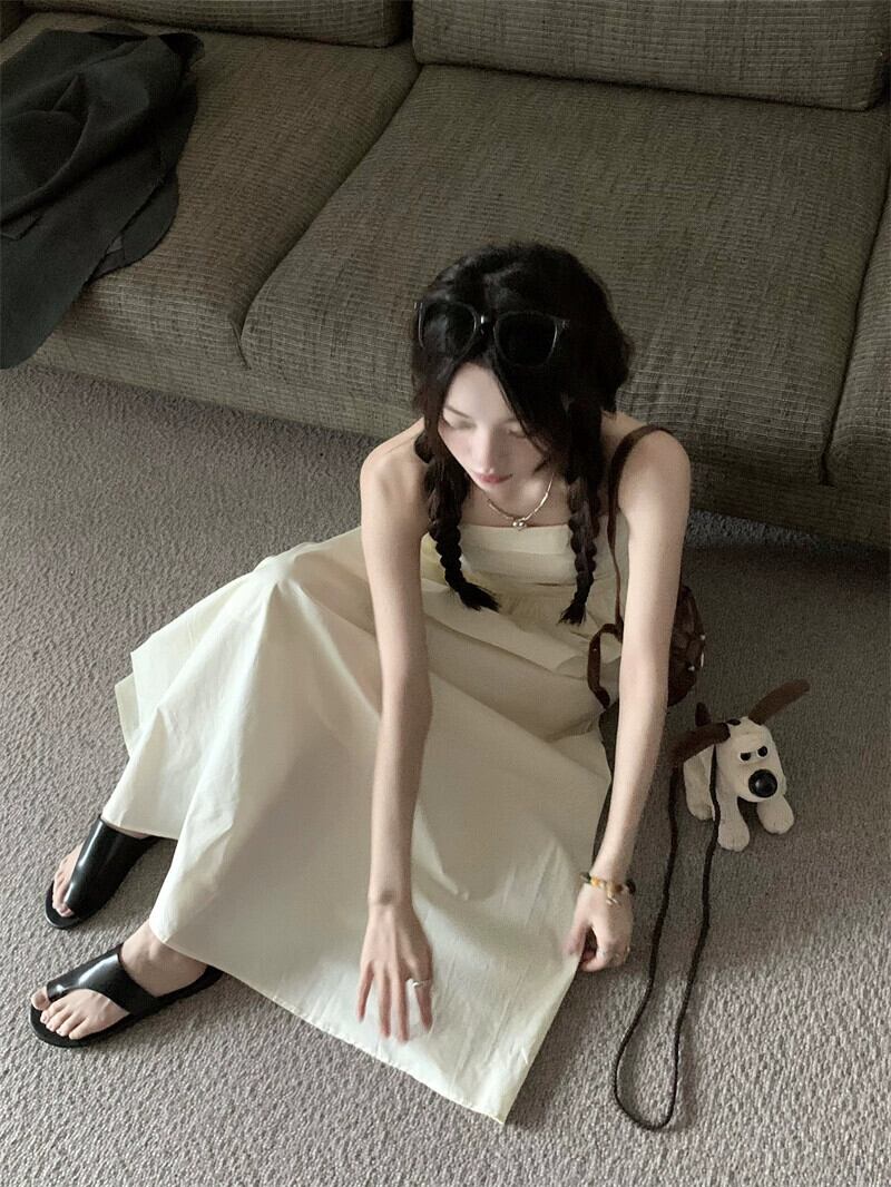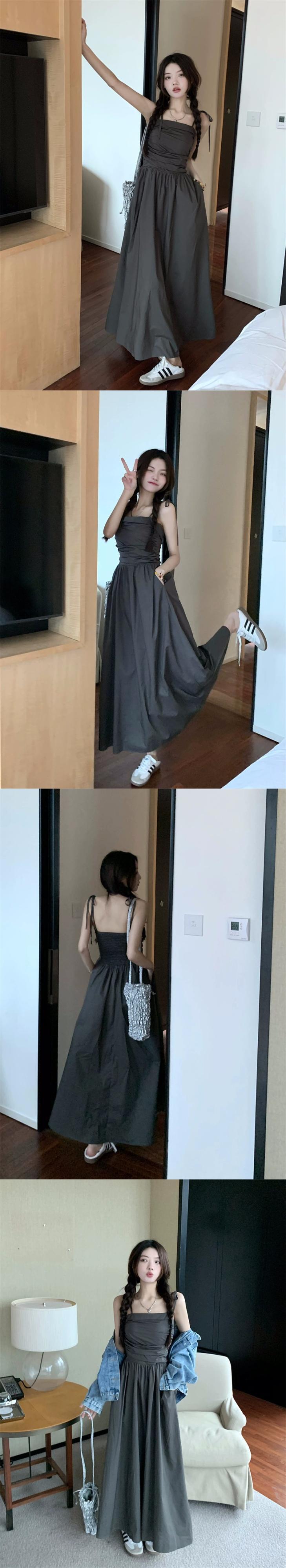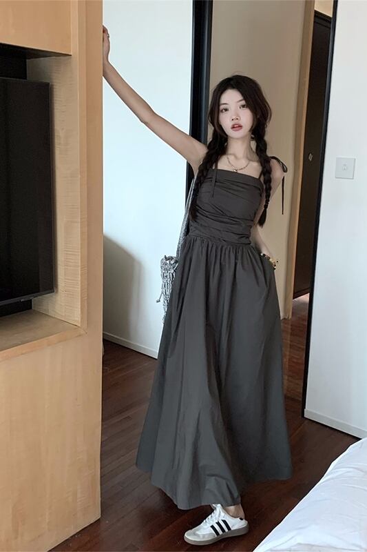 ヘップバーンスタイルプリーツウエスト気質ドレス夏 2023 新しい痩身フレンチダークグレーサスペンダードレス女性 サマー 夏物 missk10682866995