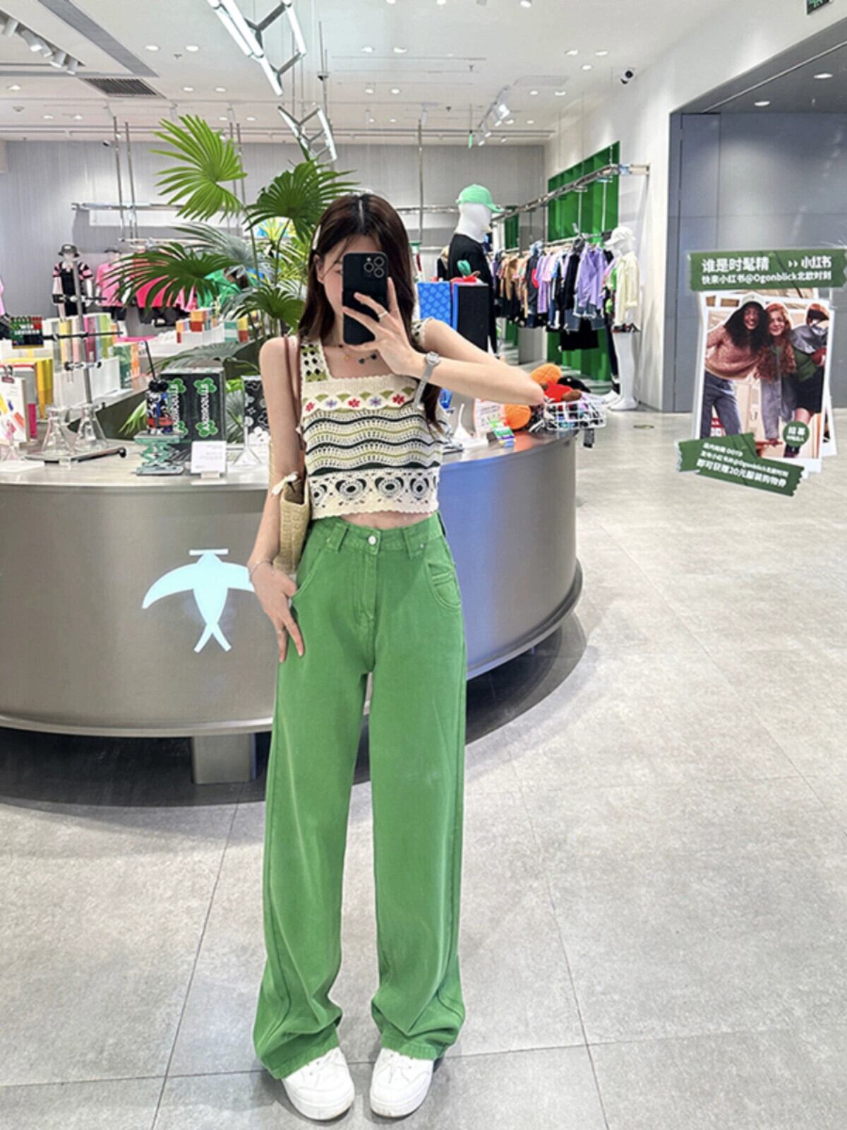 色:グリーンスリング,ジーンズ