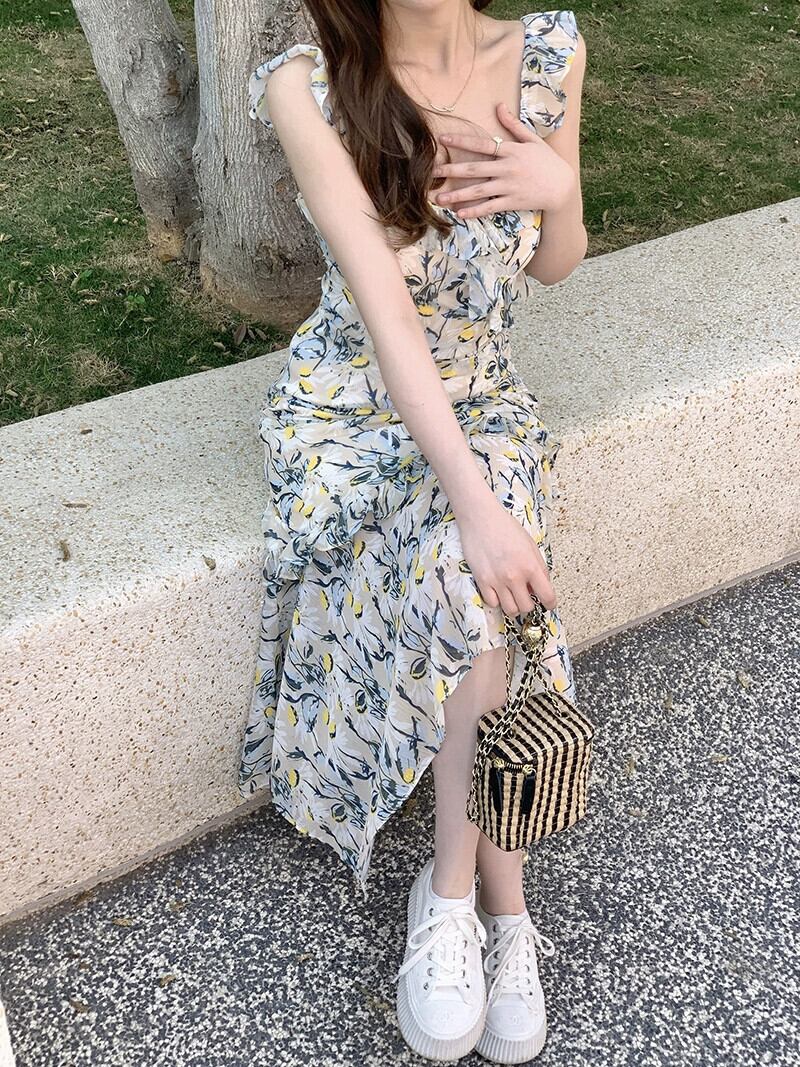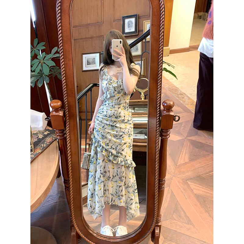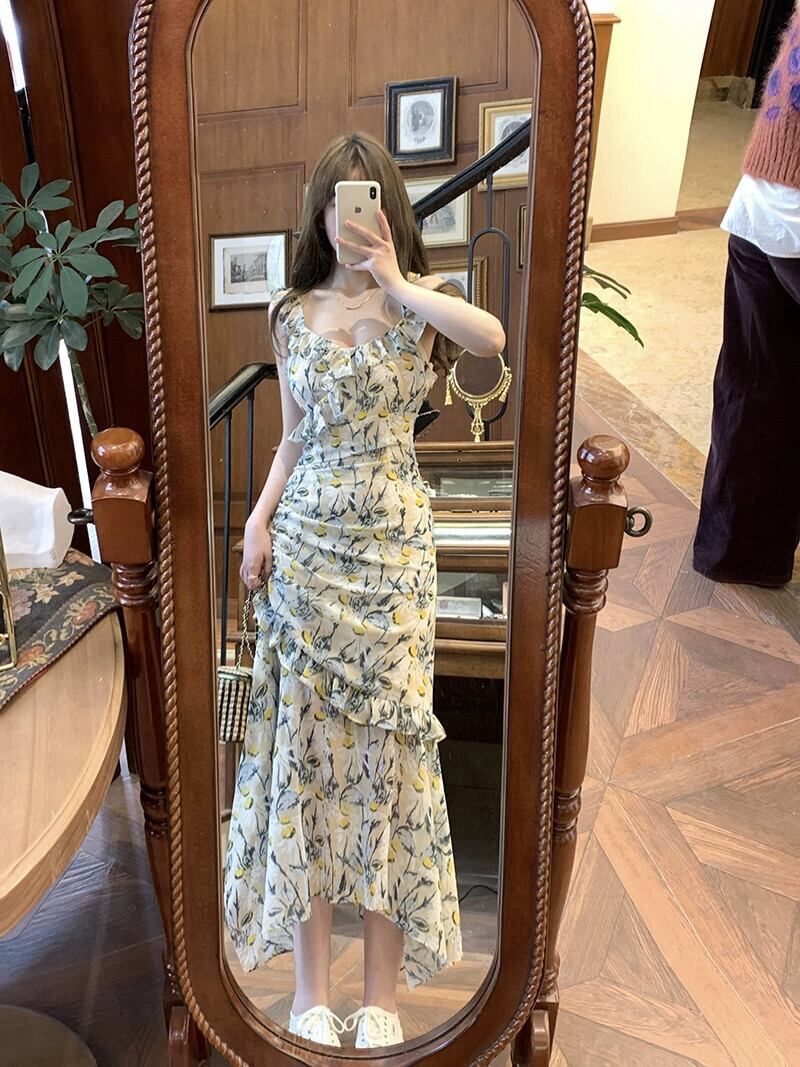 シフォンサスペンダードレス女性の夏の 2023 新しいフランスのセレブ気質スリムウエスト花柄ティーブレイクドレス サマー 夏物 missk99579696648