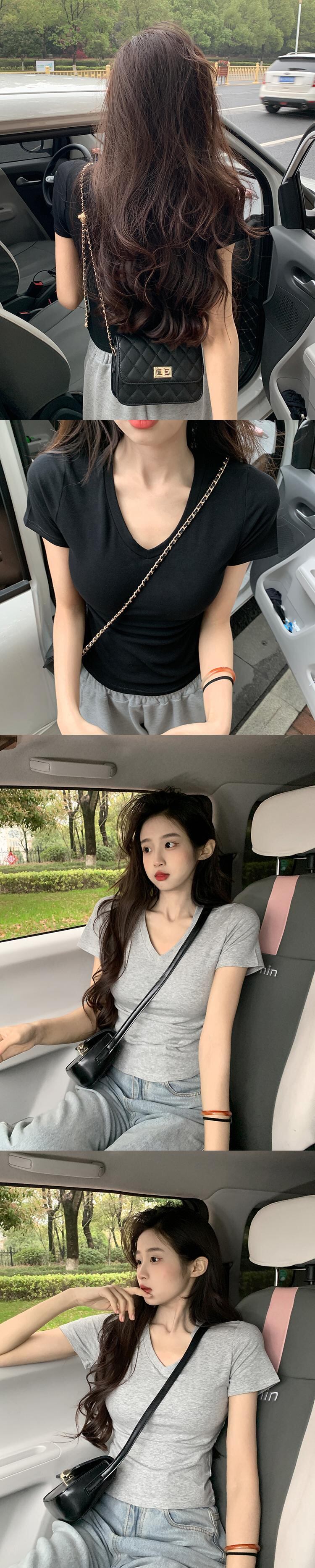 Vネック Tシャツ レディース 夏バージョン 2023 新作 ホワイト スリム スリム ネット レッド フライド ストリート ショート フロント ショルダー オールマッチ トップ サマー 夏物 missk92418489014