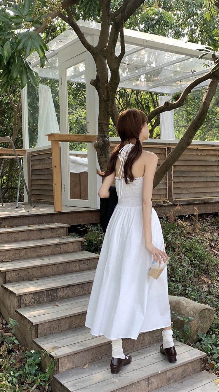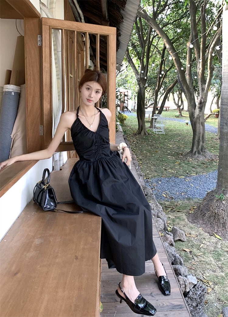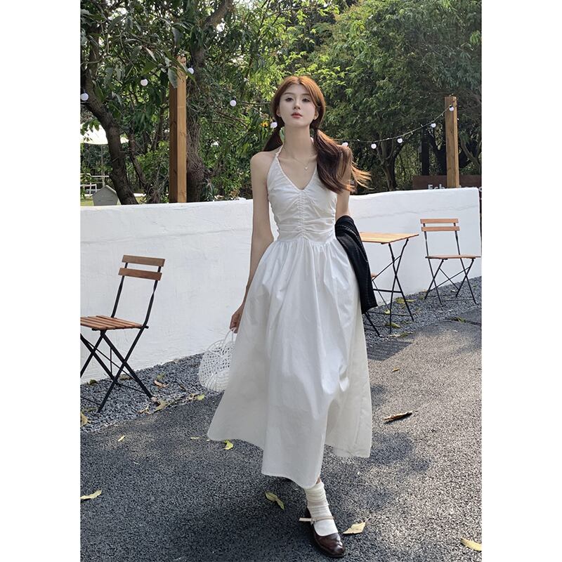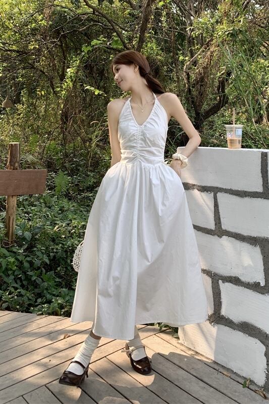 感覚スリット巾着プリーツドレス夏の新しいセクシーな純粋な欲望 V ネックウエストロングサスペンダースカート女性 サマー 夏物 Vネック ピュア missk76951935321