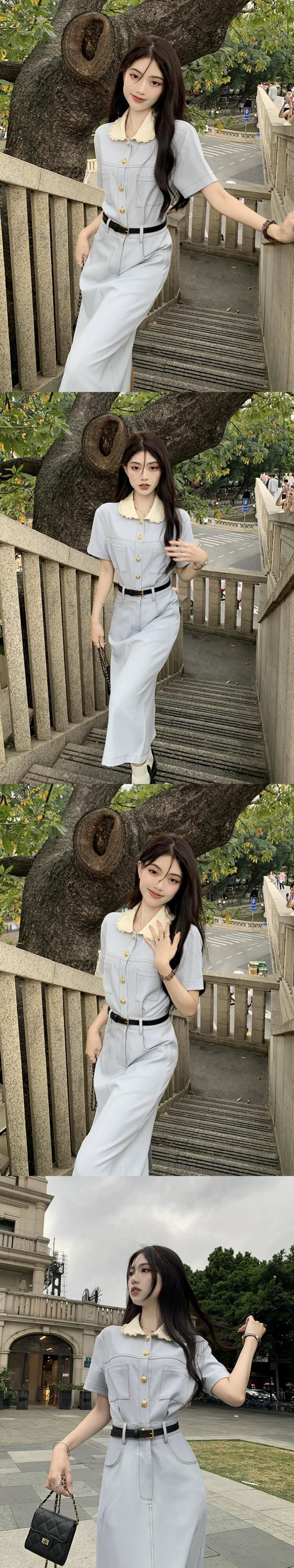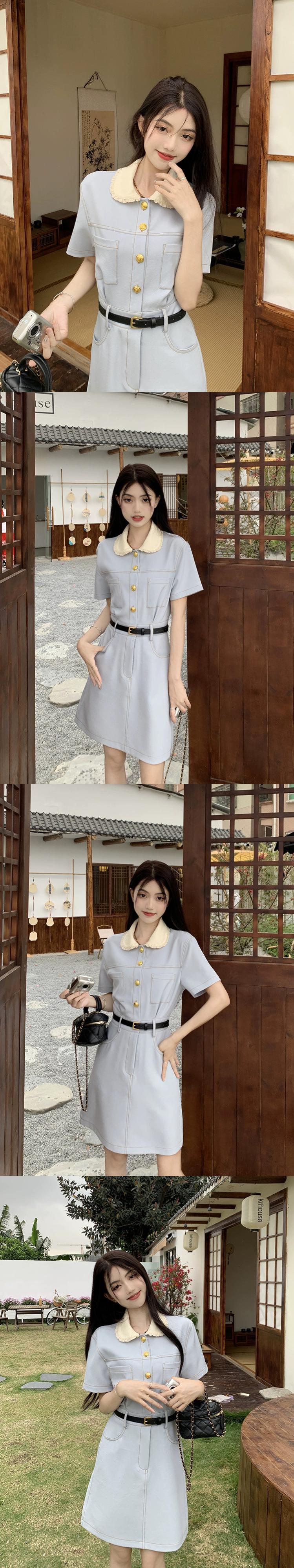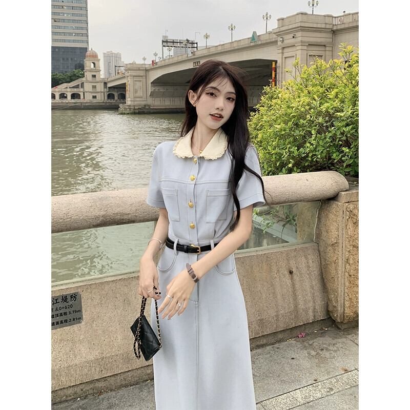 Xiaoxiangfeng 人形襟ドレスの女性の夏の 2023 新しいフレンチスタイルのデザインセンスウエストミッドレングススカート サマー 夏物 missk19281212177