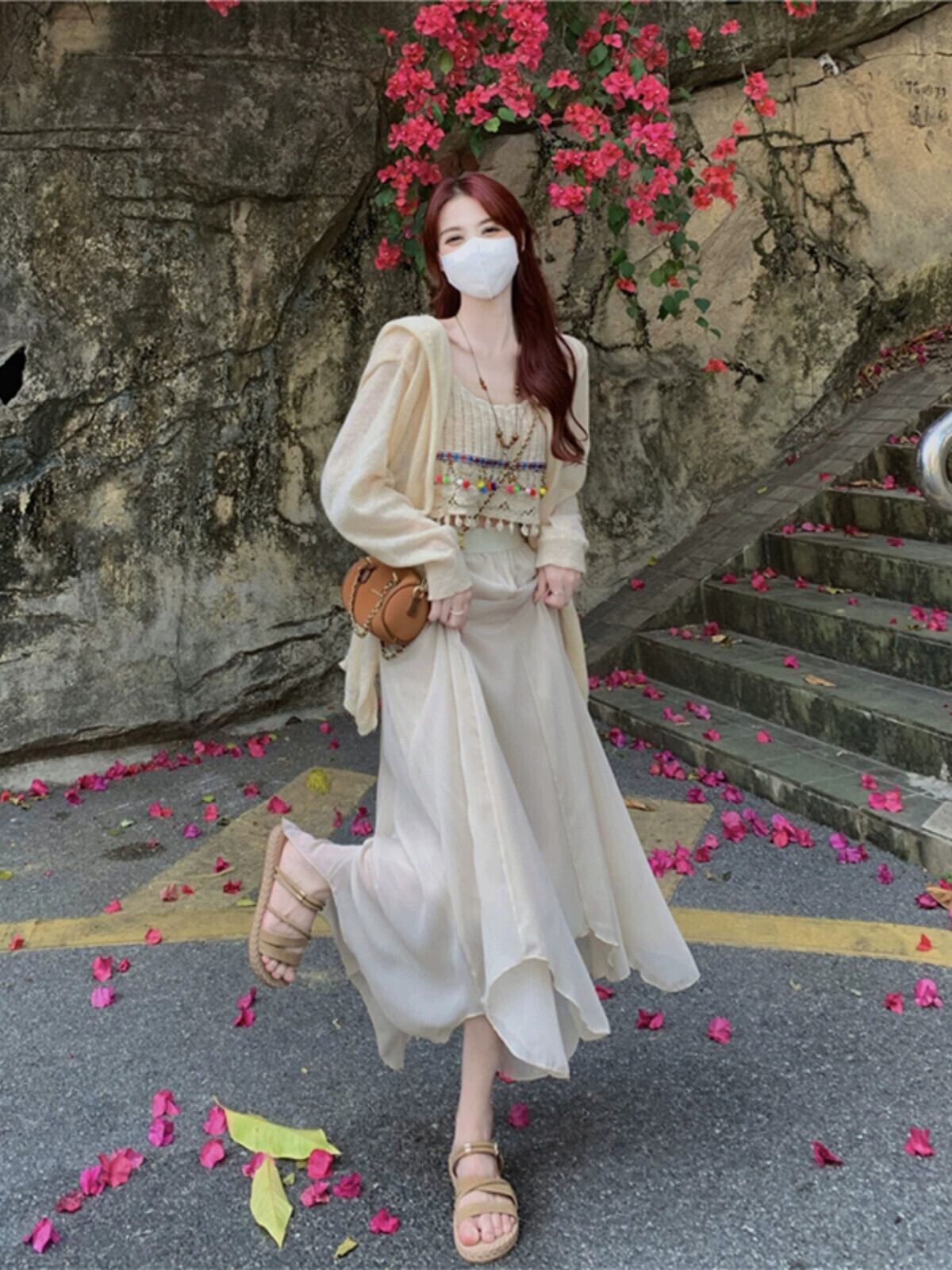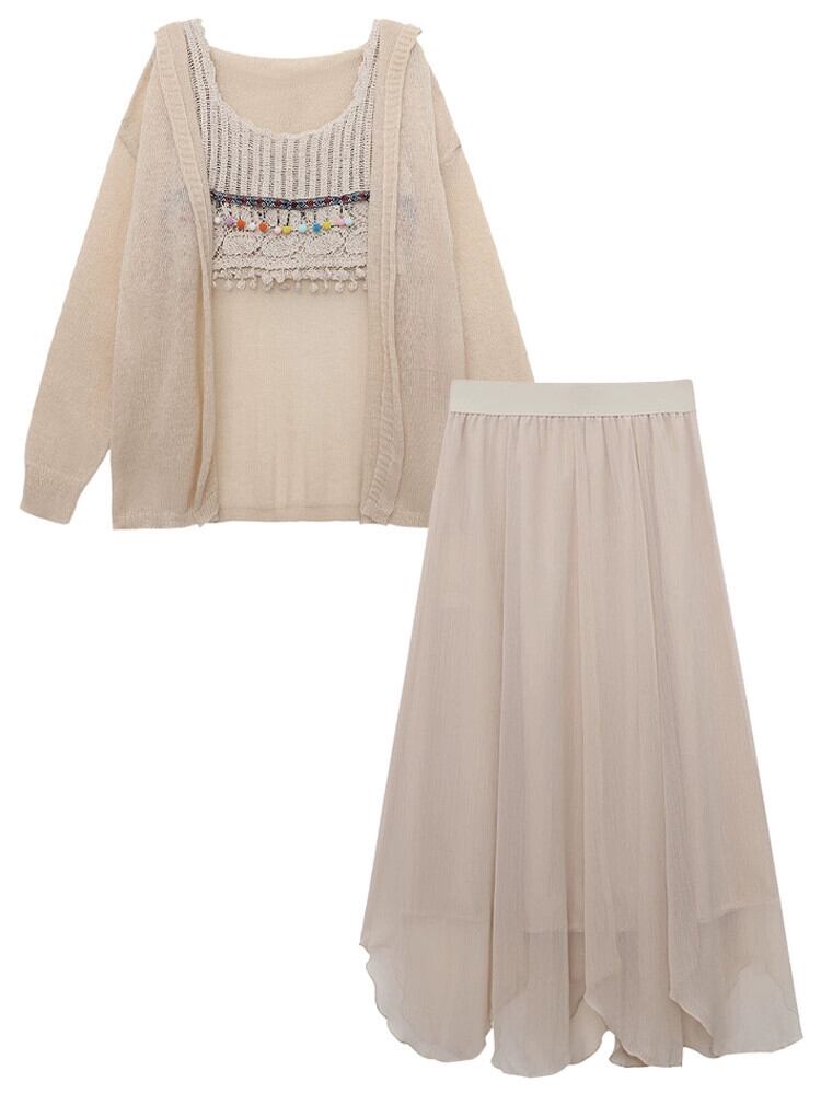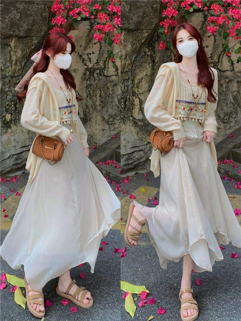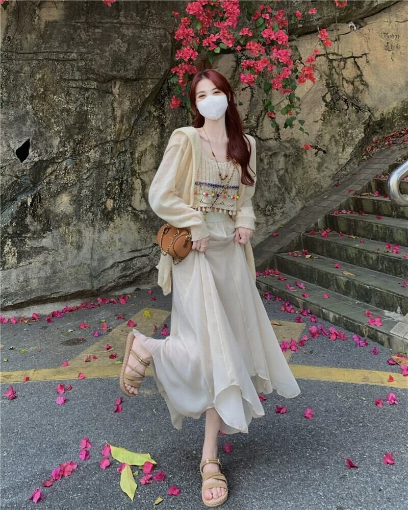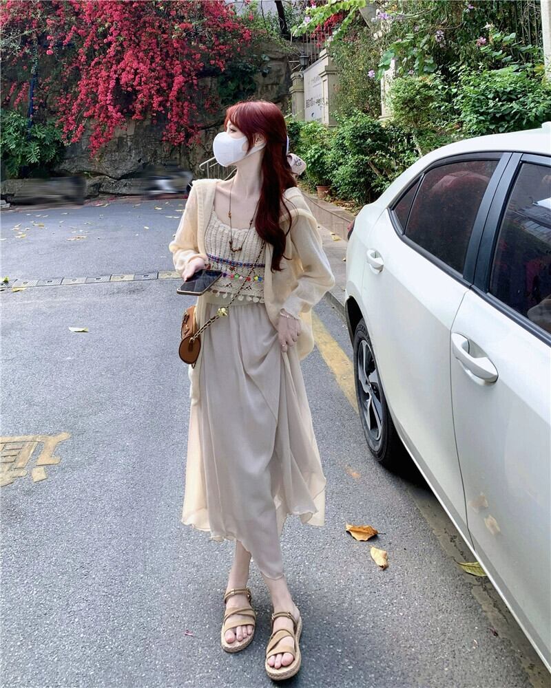 中空テルキャミソール妖精の気質ミッドレングススカート夏の新しいファッションスリーピーススーツ女性 サマー 夏物 missk60439504153