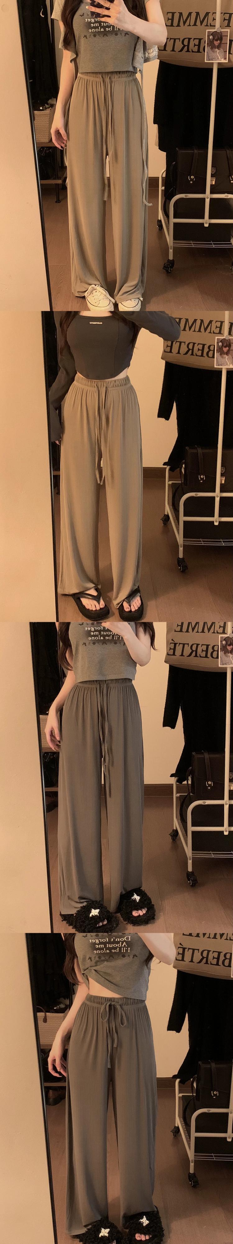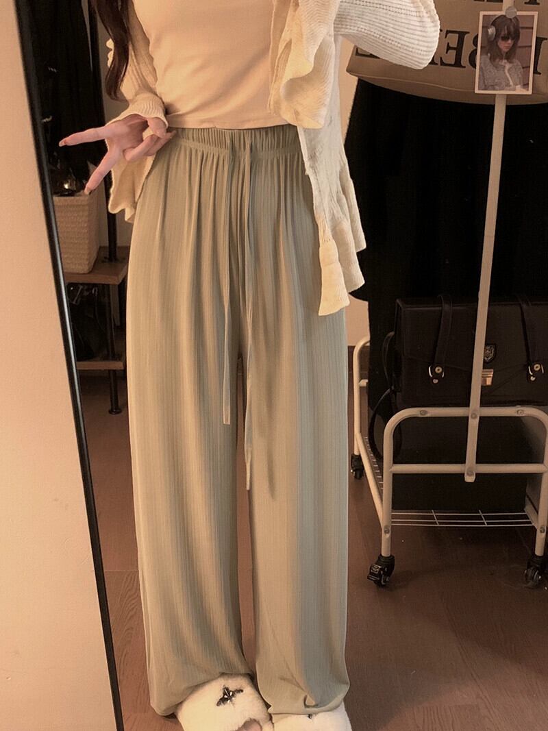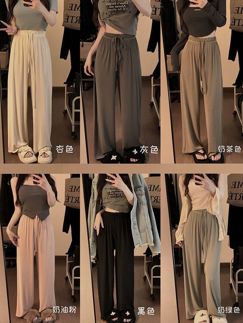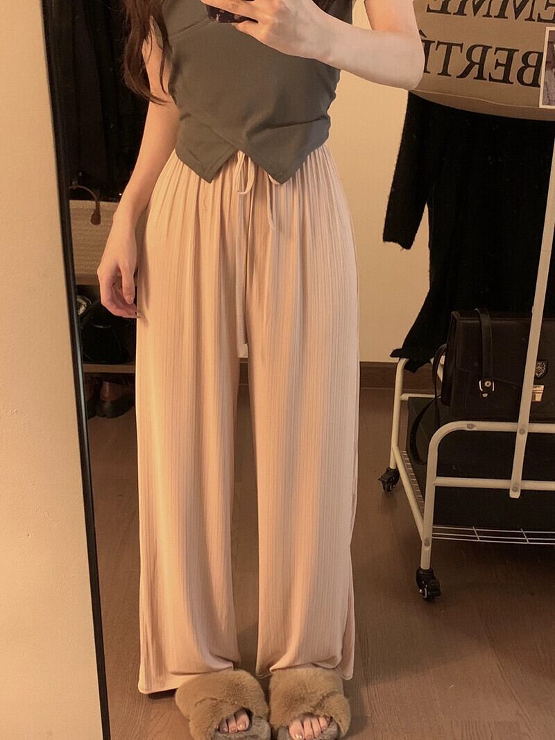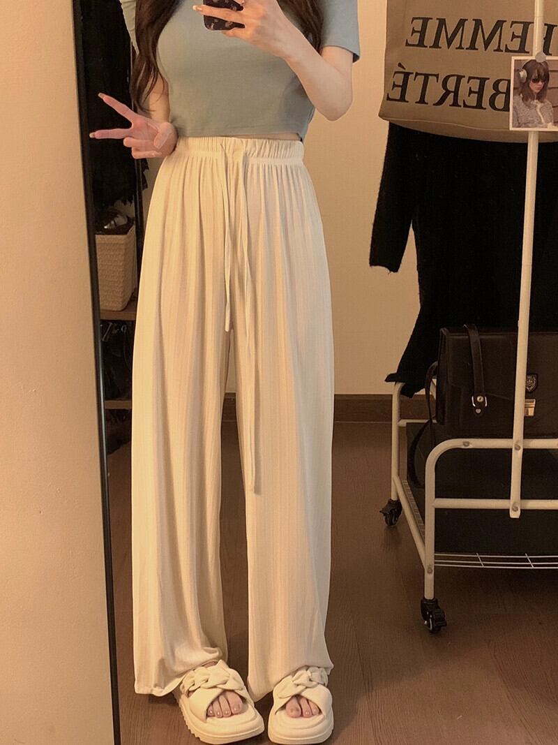 弾性ウエスト巾着アイスシルクカジュアルパンツ夏の新しいルーズハイウエストワイドレッグパンツドレープ床モップパンツ婦人服 ハイウェスト エラスティック 伸縮 サマー 夏物 ワイドパンツ missk8545531702