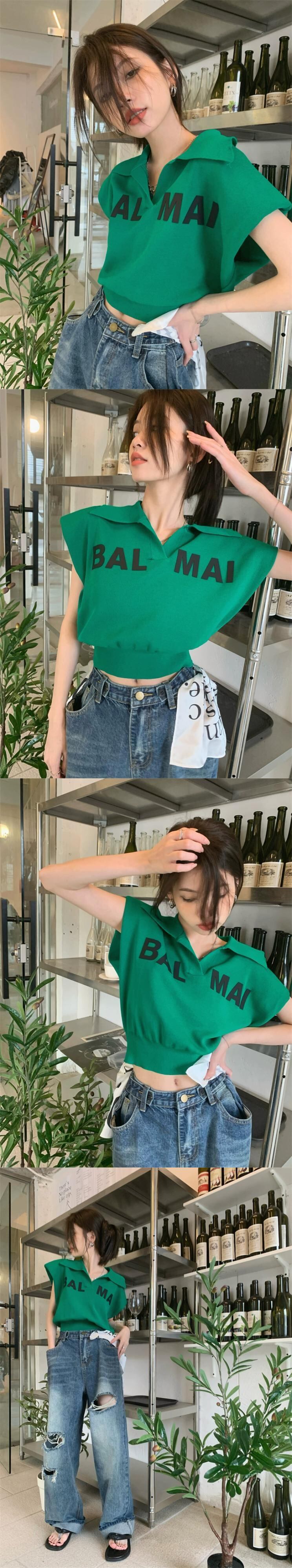 ポロカラーノースリーブベスト Tシャツレディース夏 2023 新しいレトロアウターレタープリントルーズショートトップ サマー 夏物 missk6255731854