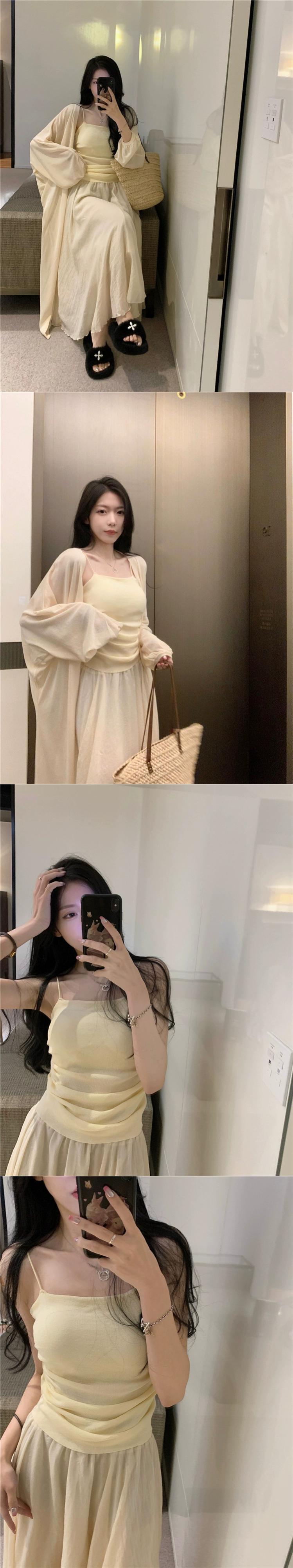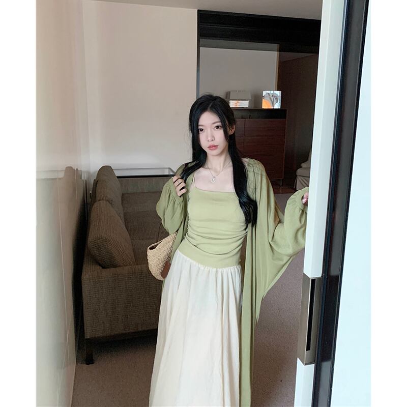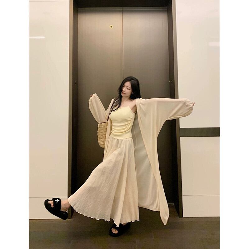 中国風のロング日焼け止めカーディガンプリーツキャミソールスカート女性の夏の 2023 新しいファッションスリーピーススーツ サマー 夏物 missk65432963661