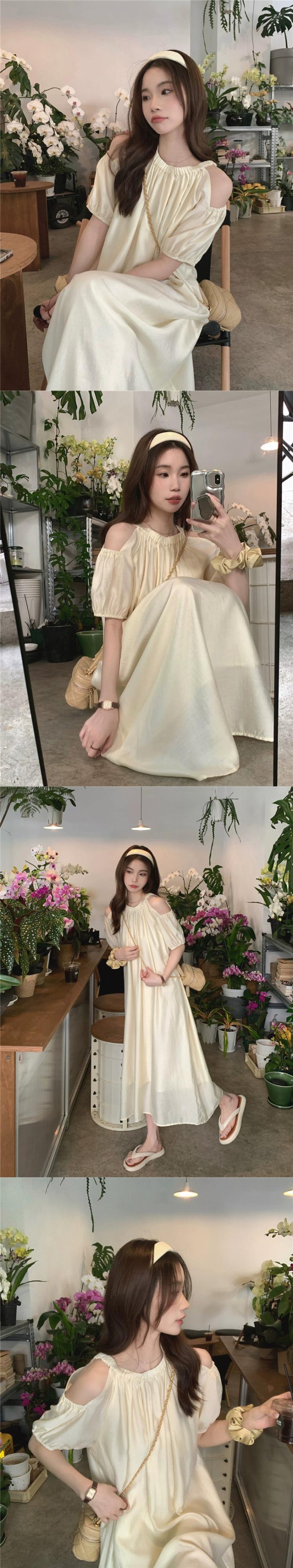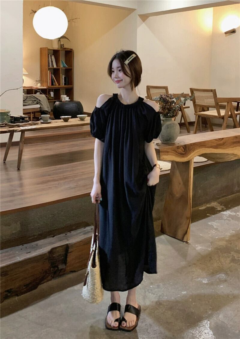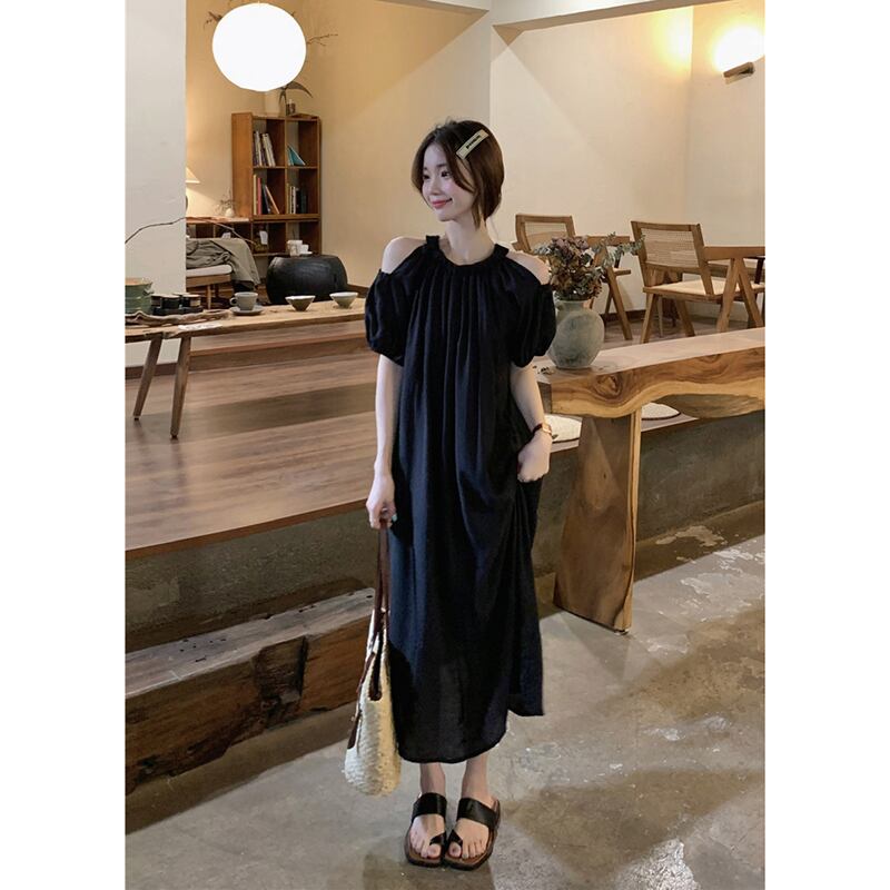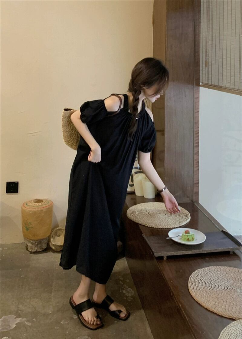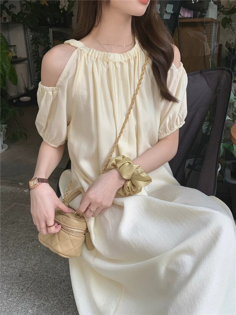 パフスリーブストラップレス気質シフォンドレス女性の夏の 2023 新しいレトロミッドレングススリム半袖スカート サマー 夏物 missk44733484189