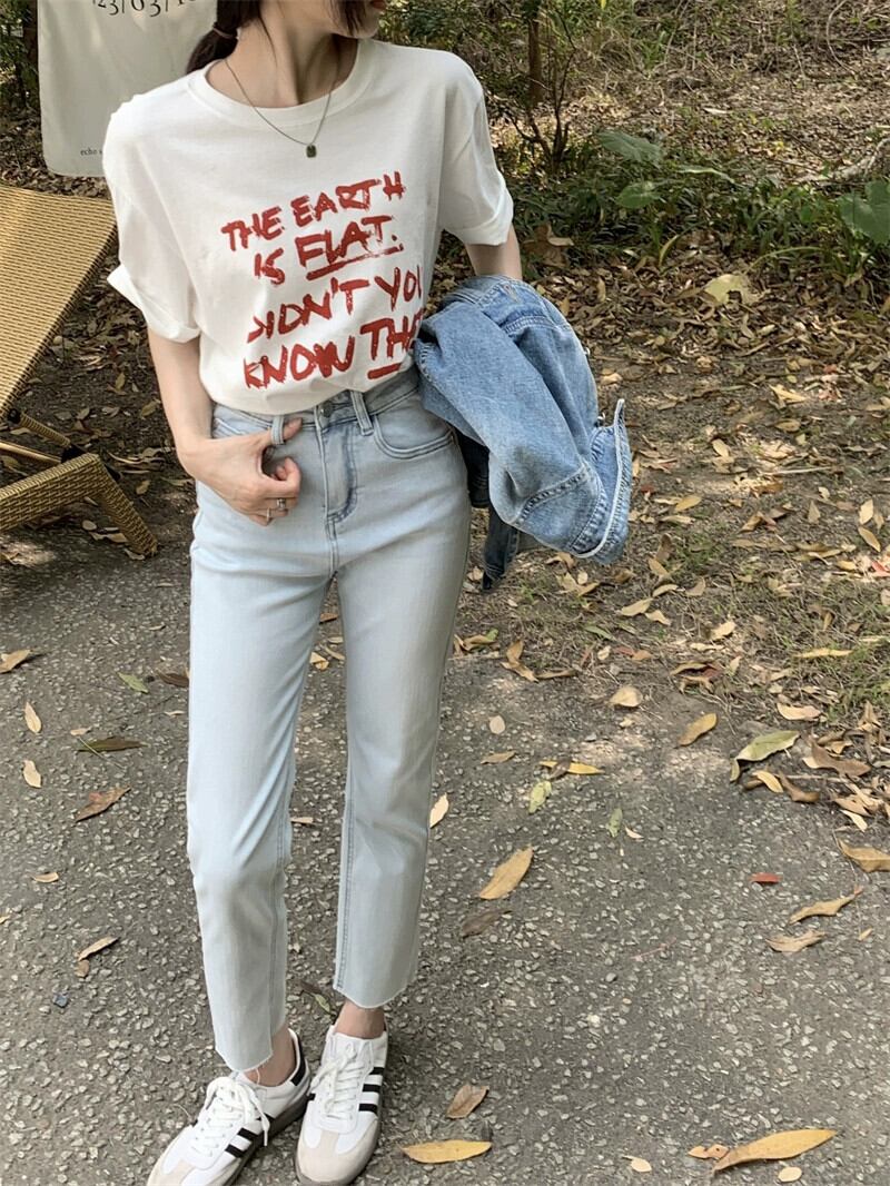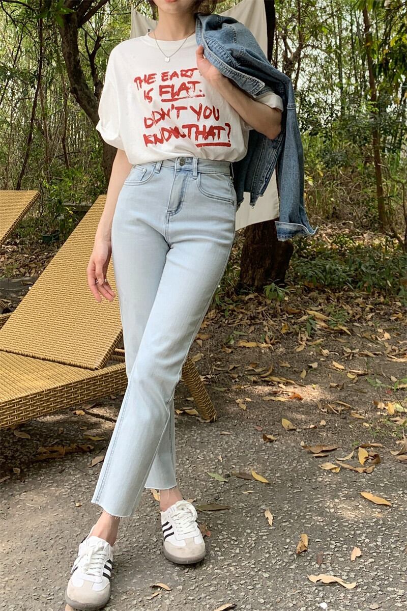 ライトカラーの9点ジーンズの女性の夏バージョン2023新しいハイウエストスリムで小さなストレッチタイトフィットストレートレッグパンツ レッド サマー 夏物 missk46665543121