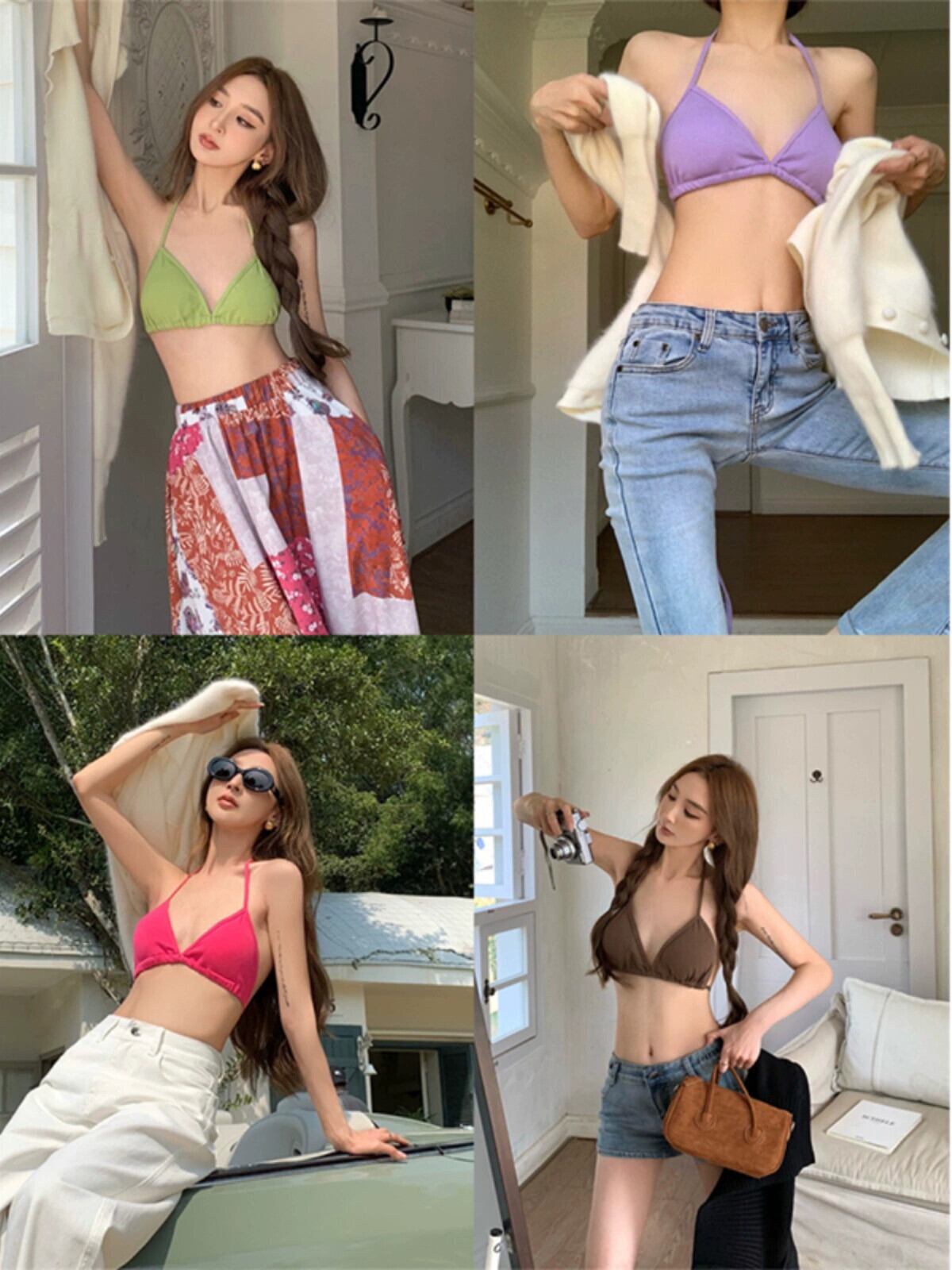 セクシーな女の子は、ぶら下げネックキャミソール夏休みウインドストラップ三角カップ下着ビキニトップ女性を着用します サマー 夏物 missk69209606320