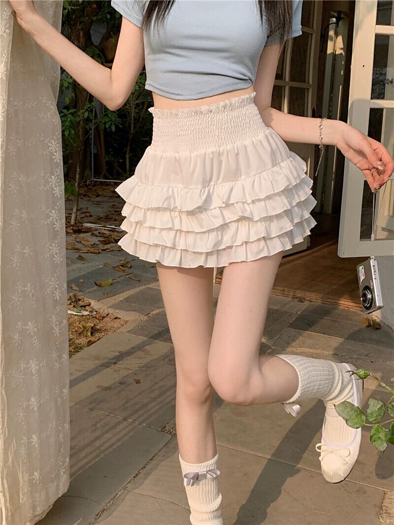 センススウィートホワイトスカート夏2023新しいバレエスタイルニッチハイウエストケーキスカートイン女性 ハイウェスト 大人ガーリー キュート カジュアル サマー 夏物 missk59907728658