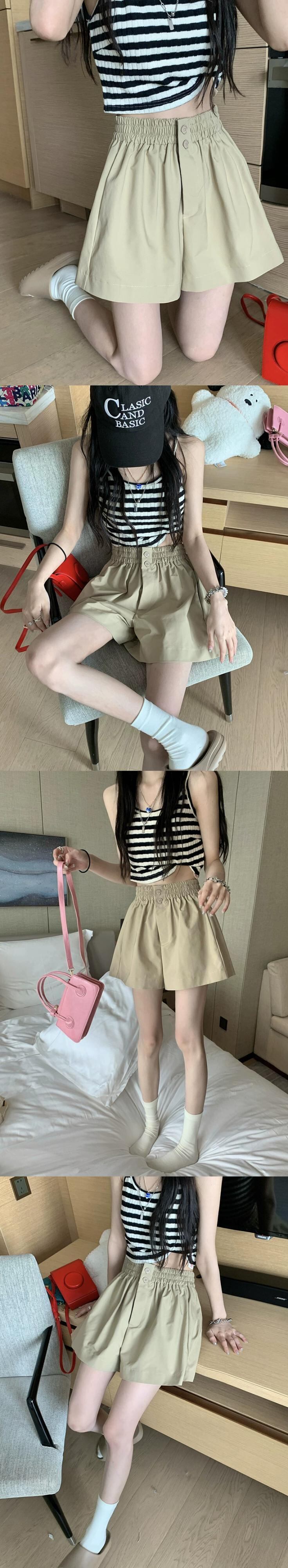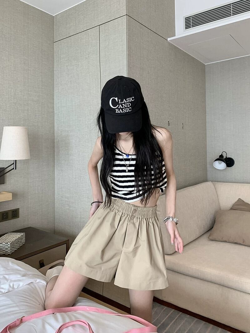 弾性ウエストワイドレッグショーツレディース夏バージョン2023新しいハイウエスト痩身無地オールマッチカジュアルパンツスタイル ハイウェスト エラスティック 伸縮 サマー 夏物 ブルマー ソリッドカラー missk67328981366