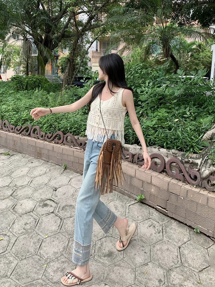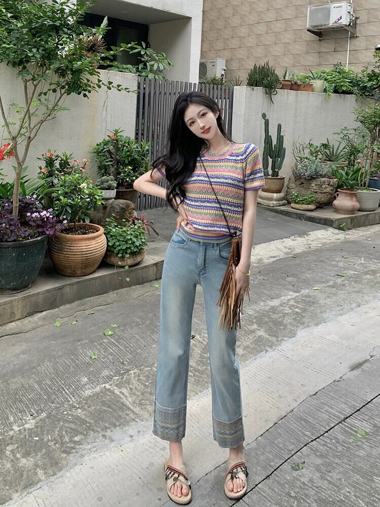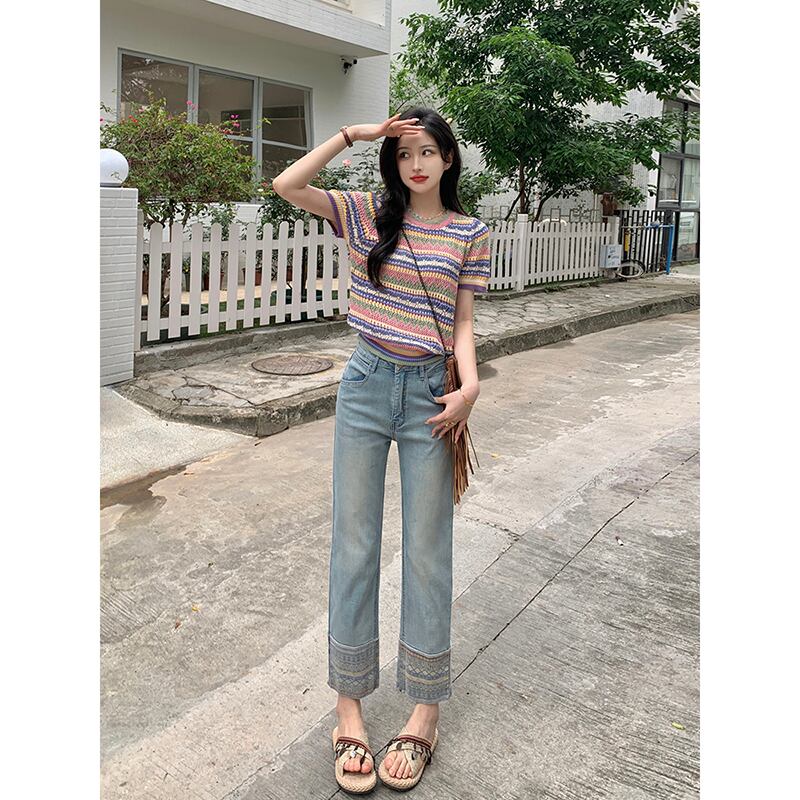 レトロ 9 点ジーンズ女性の 2023 夏の新しいデザインセンスニッチスプライシングハイウエスト細いストレートチューブパンツ ハイウェスト サマー 夏物 missk63404904802