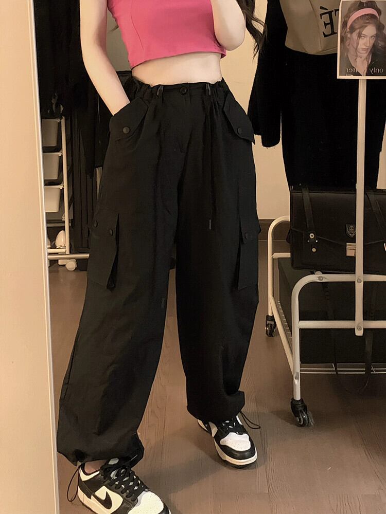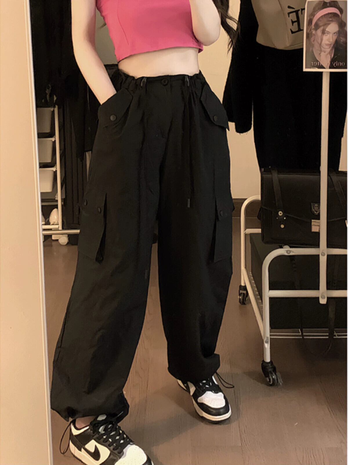ローズレッドオーバーオールレディース夏バージョン2023新しいルーズワイドレッグパンツハイウエストスポーツパンツカジュアルロングパンツ ハイウェスト サマー 夏物 missk48251222181