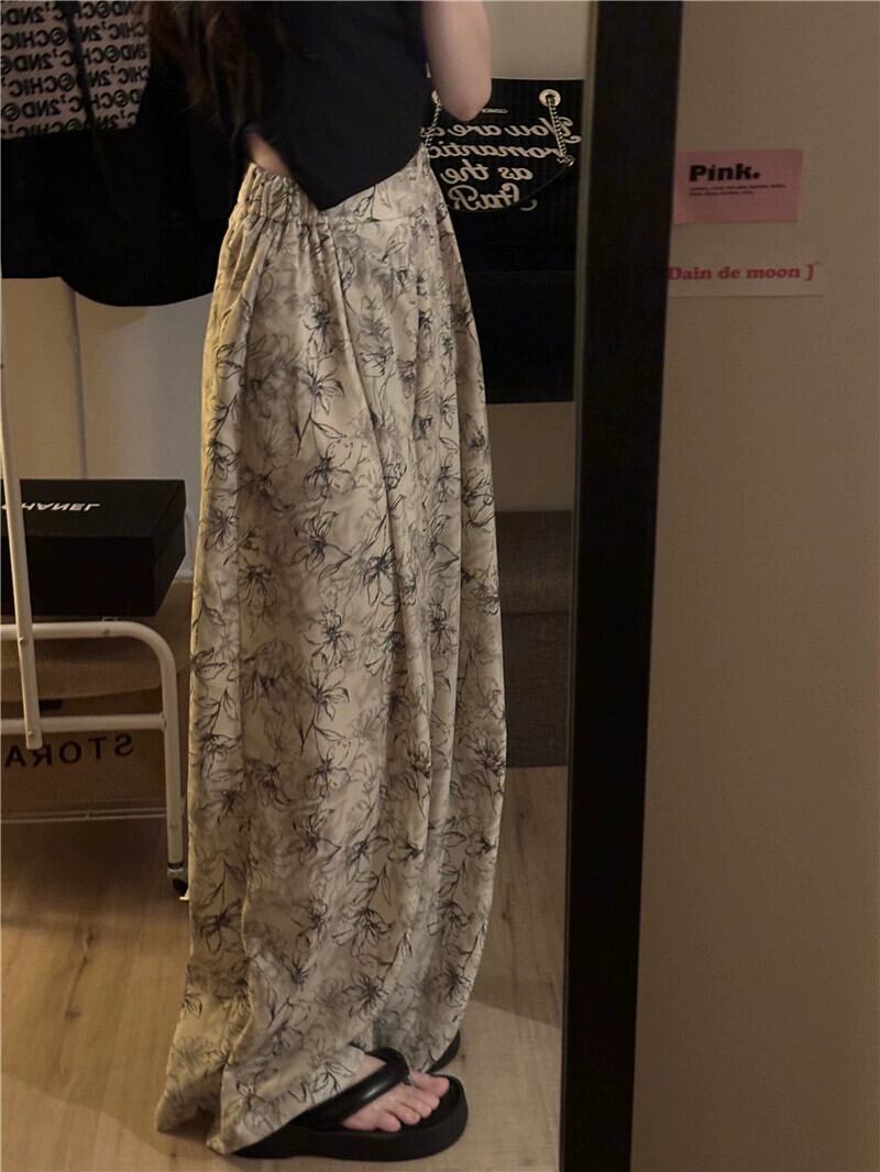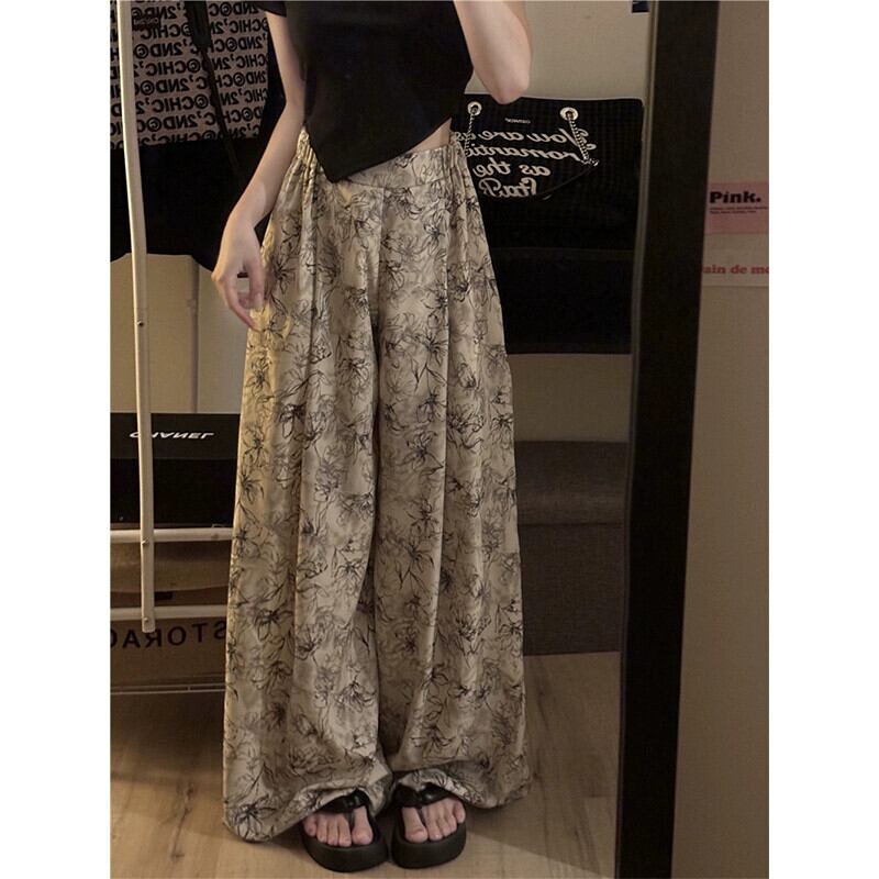 タイダイ花柄ワイドレッグパンツレディース 2023 夏の新しいレトロなデザインセンスハイウエストスリムモップカジュアルパンツズボン ハイウェスト サマー 夏物 missk27898797823