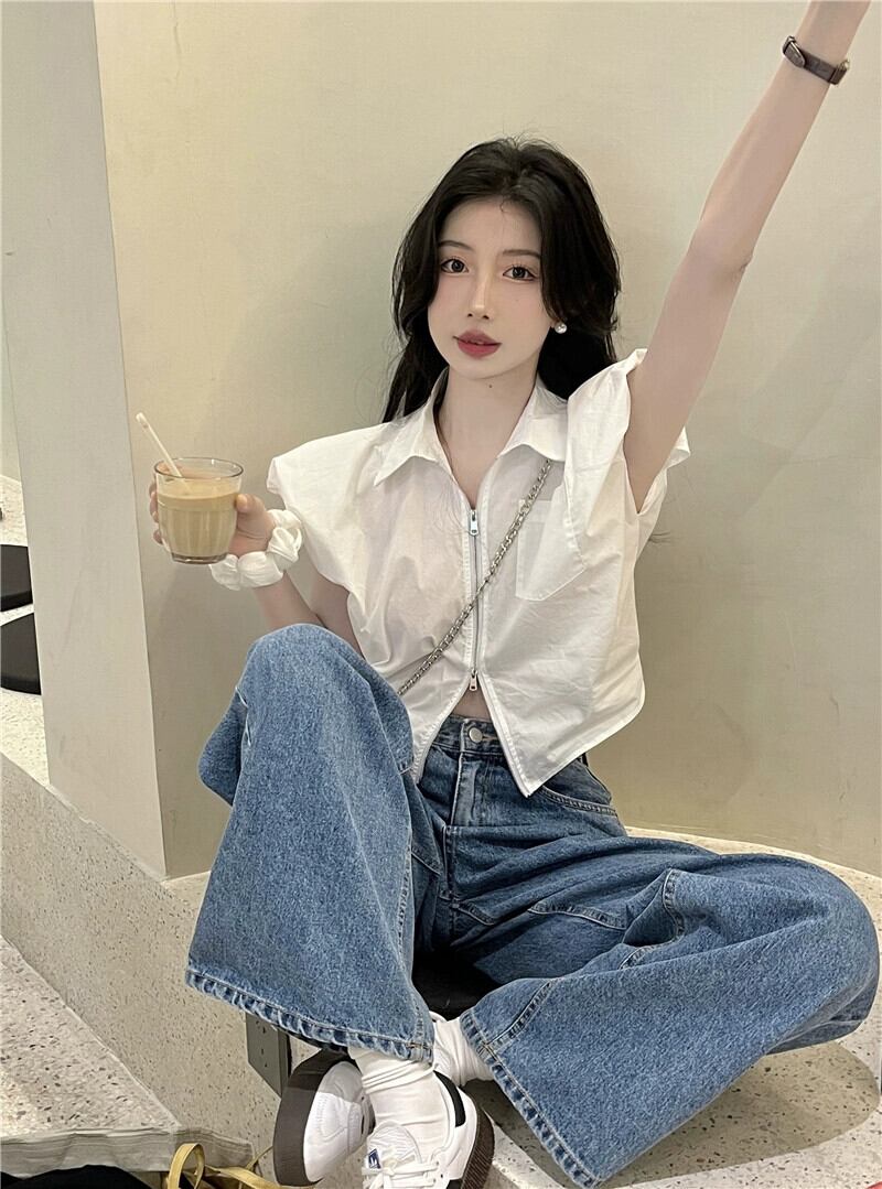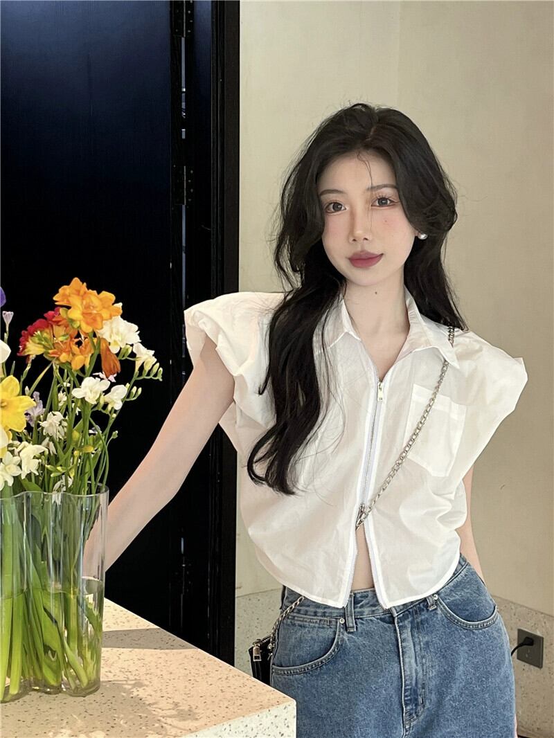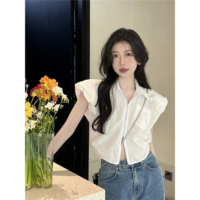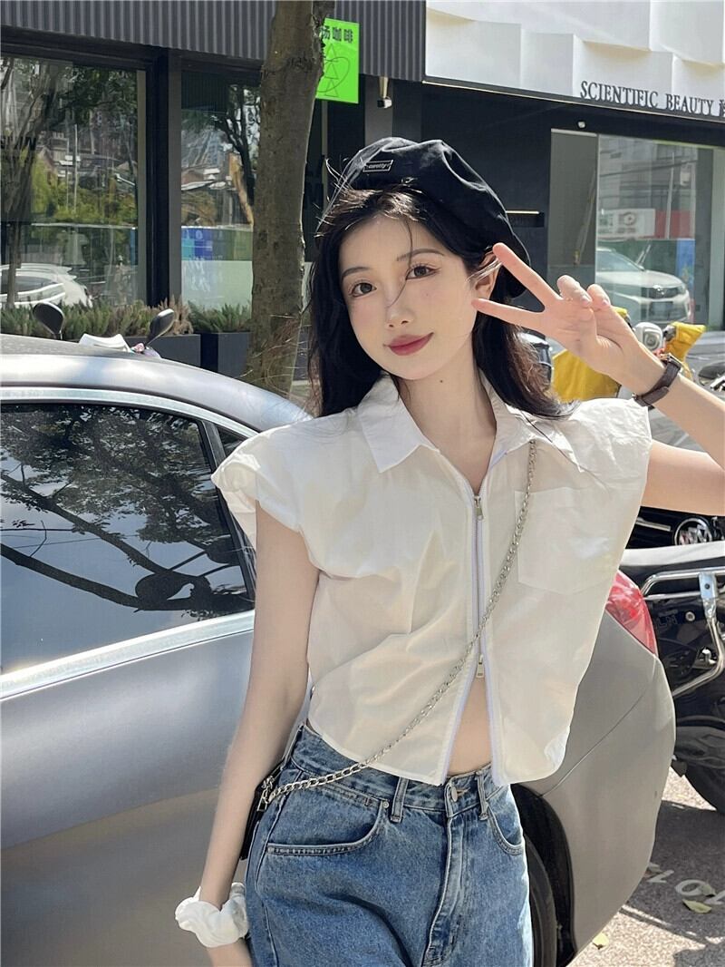 -エンドジッパーポロカラー半袖シャツ夏の新しいデザインセンスニッチスリムショートカーディガントップレディース サマー 夏物 missk45160335572