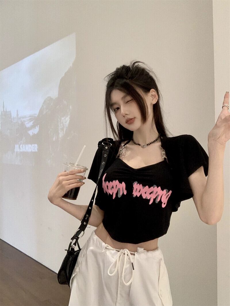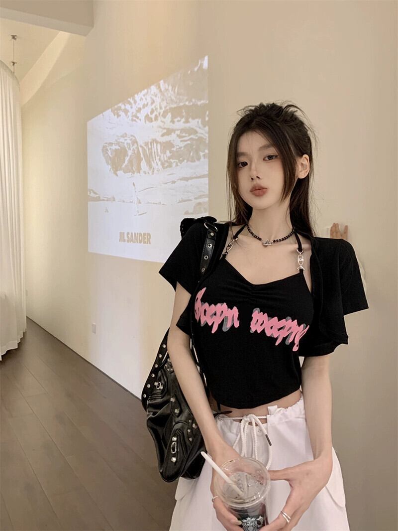 レタープリントぶら下げネックキャミソールショートカーディガン女性の夏の 2023 新しいファッションスーツ サマー 夏物 missk72187268218