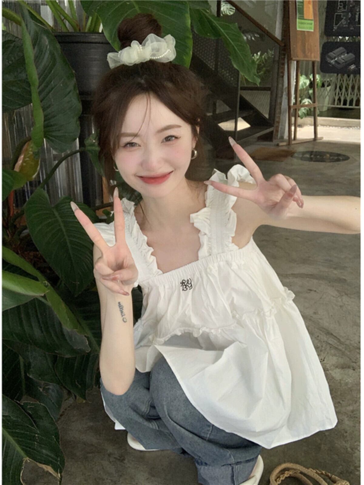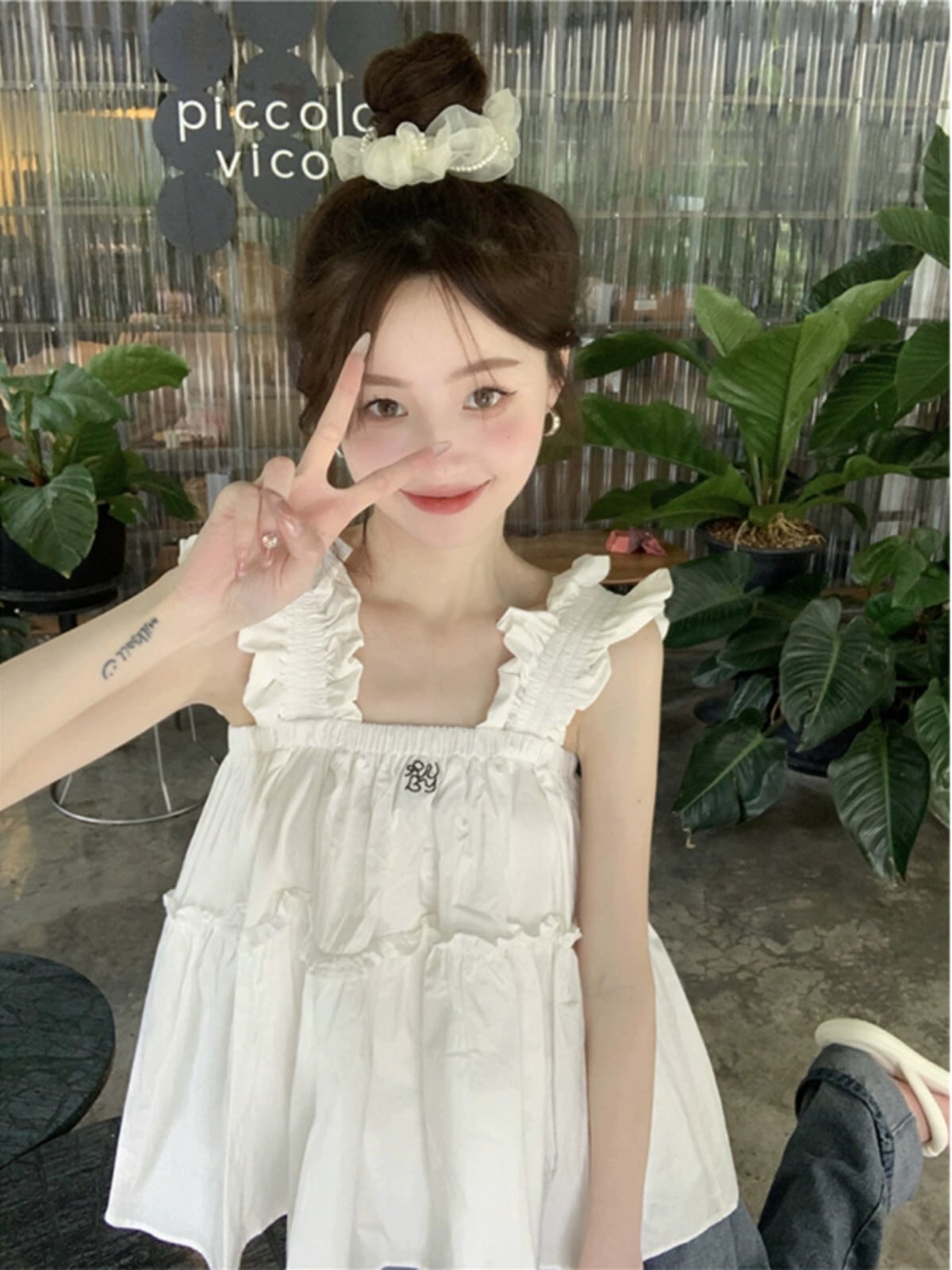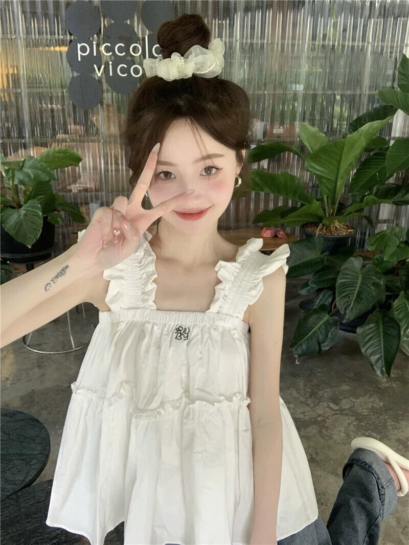 木製耳折り白の小さなスリング夏の新しい小さな新鮮で年齢を軽減するデザインセンスの刺繍ベストトップ女性のトレンド ホワイト レッド サマー 夏物 missk87262301005