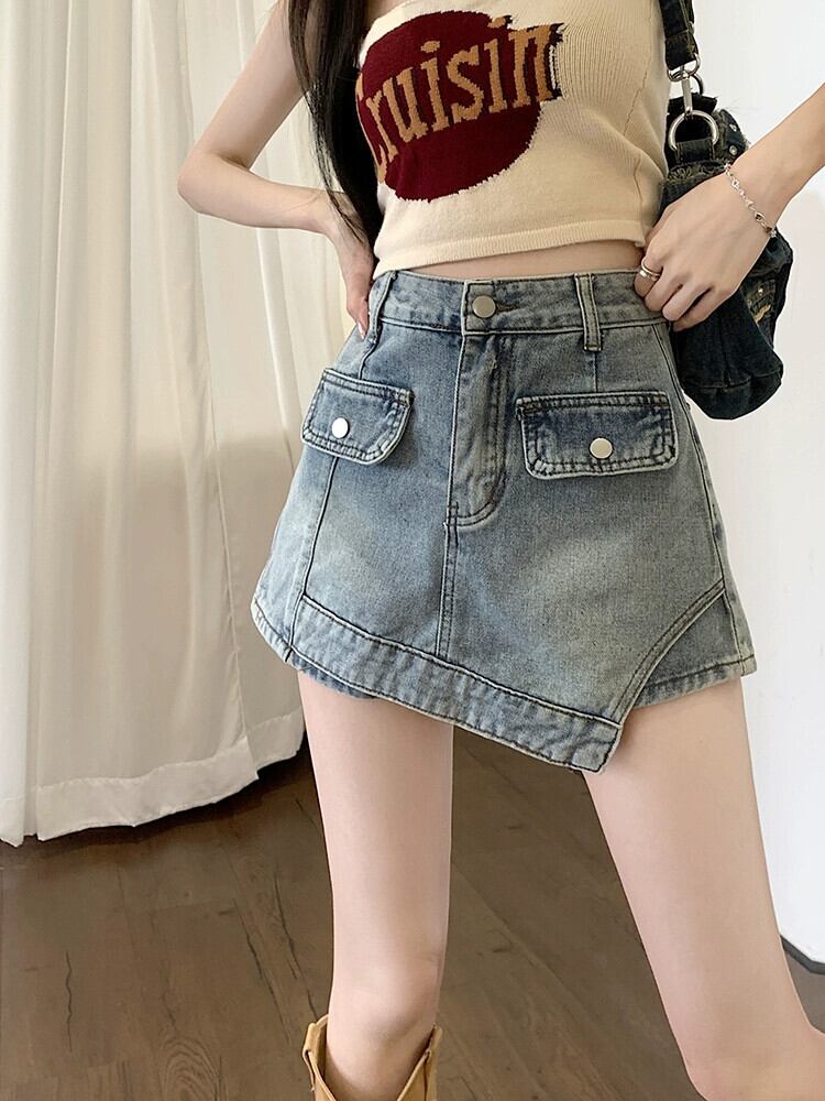 不規則なデニムスカートの女性の夏バージョン 2023 新しいハイウエスト痩身デザインセンスパッケージヒップショーツスカート潮 ハイウェスト サマー 夏物 ブルマー missk3969511522
