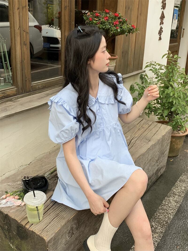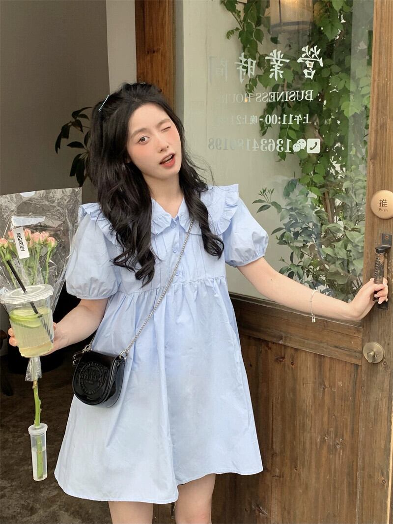 ドールカラー初恋ドレスレディース 2023 夏の新作甘いハイウエストウエストスリムバブルバブル半袖 A ラインスカート ハイウェスト 大人ガーリー スウィート キュート カジュアル サマー 夏物 Aライン missk12004116640