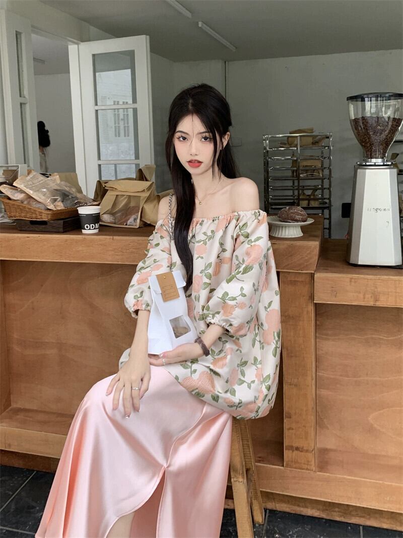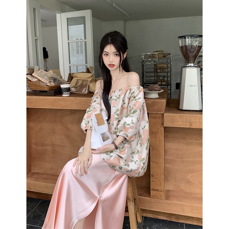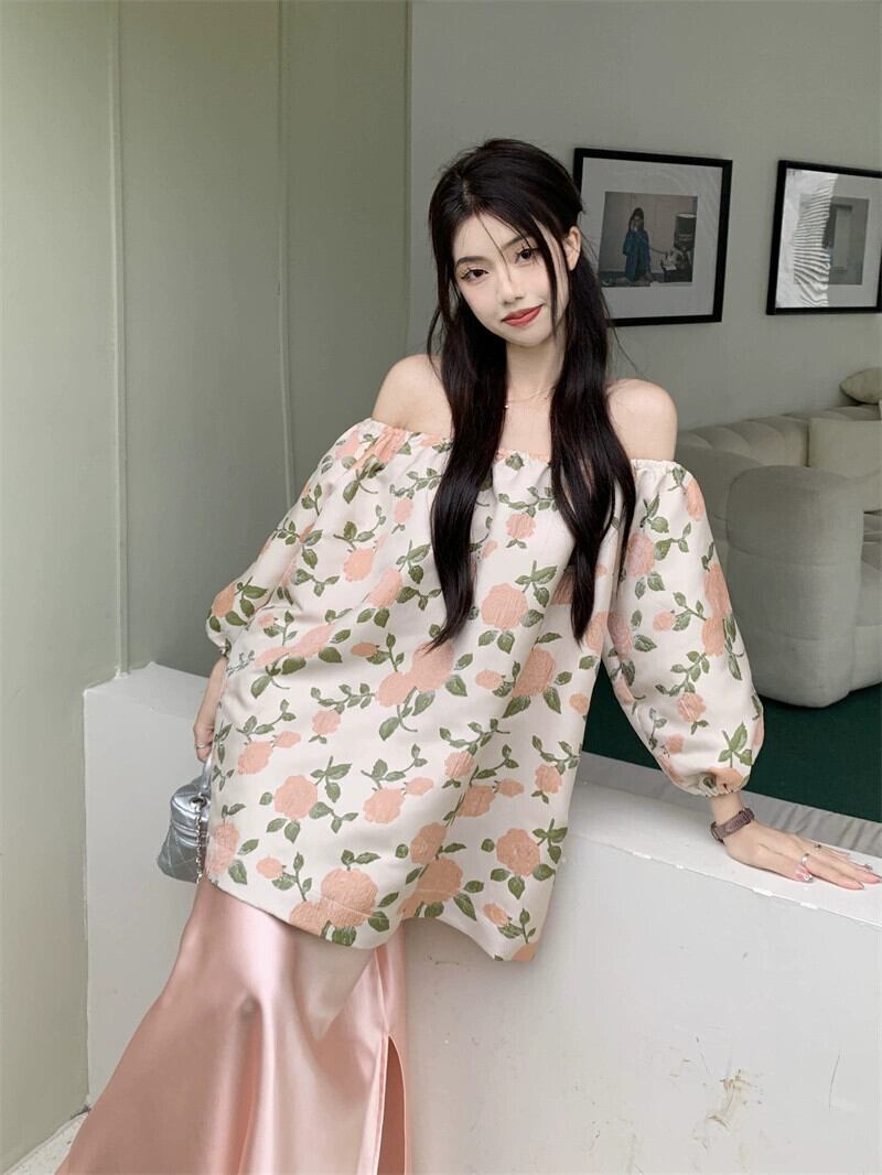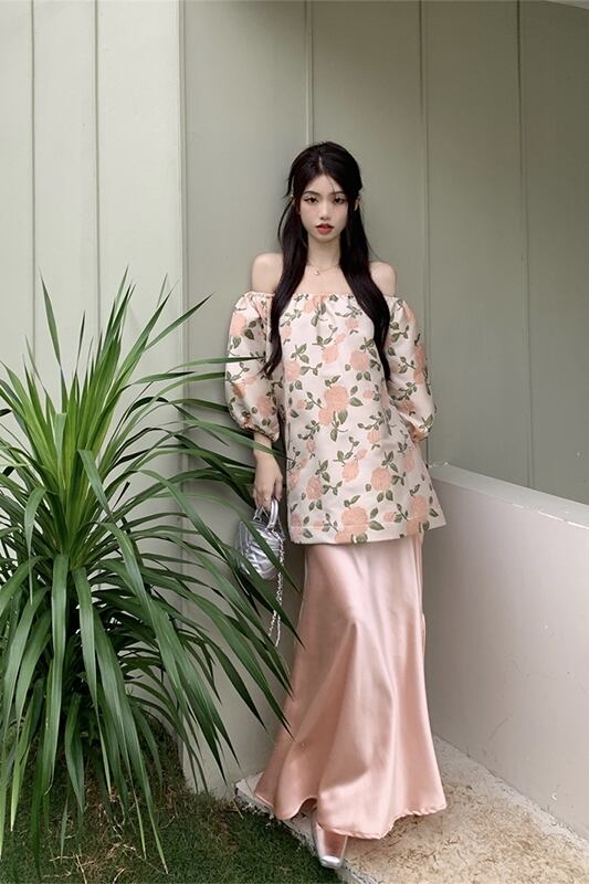 ワンショルダーレトロローズ花柄トップハイウエストスカート女性の夏の 2023 新しいファッションスーツ ハイウェスト サマー 夏物 missk94019057932