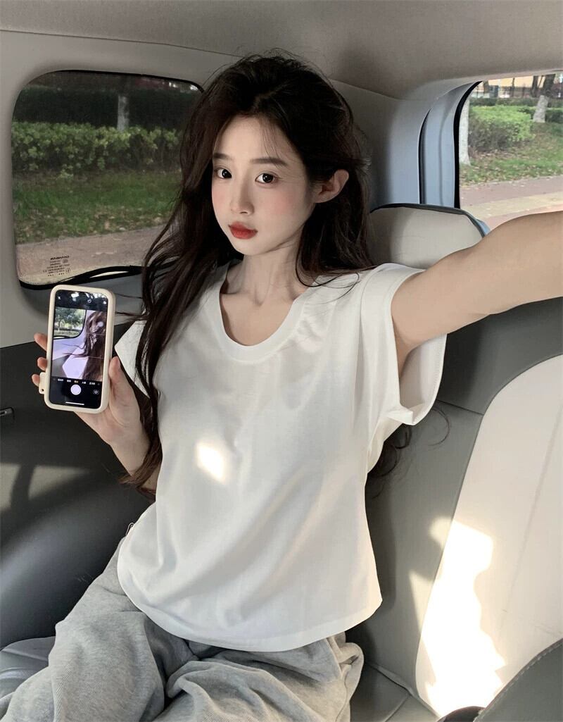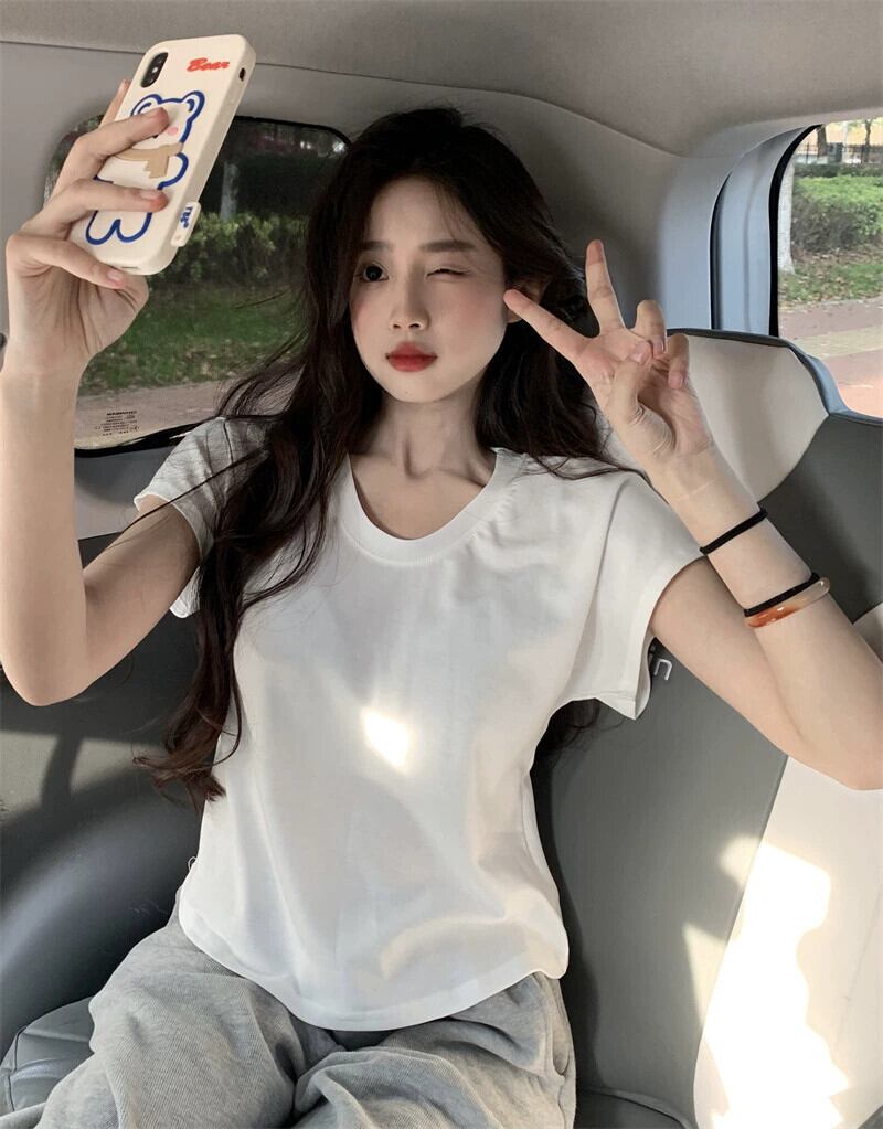 ピュアコットン半袖Tシャツレディース夏バージョン2023新しいスリムフィットと薄いショートストレッチソリッドカラーオールマッチトップイン サマー 夏物 missk95145767825