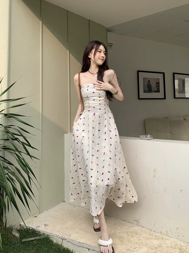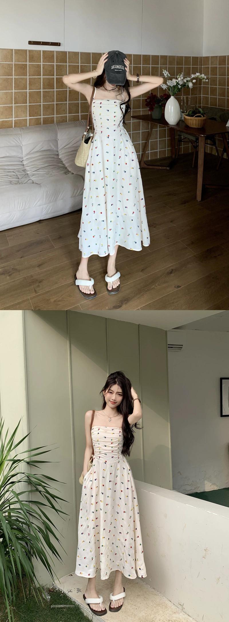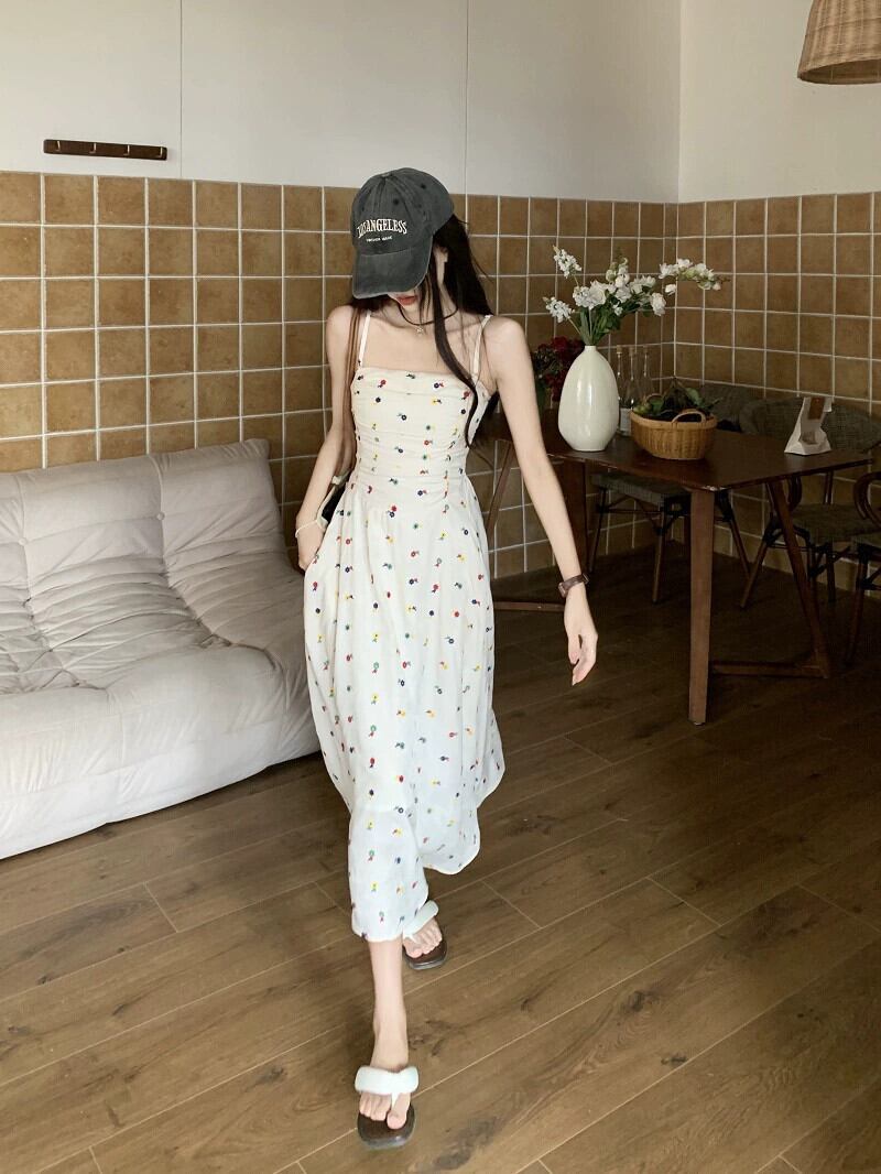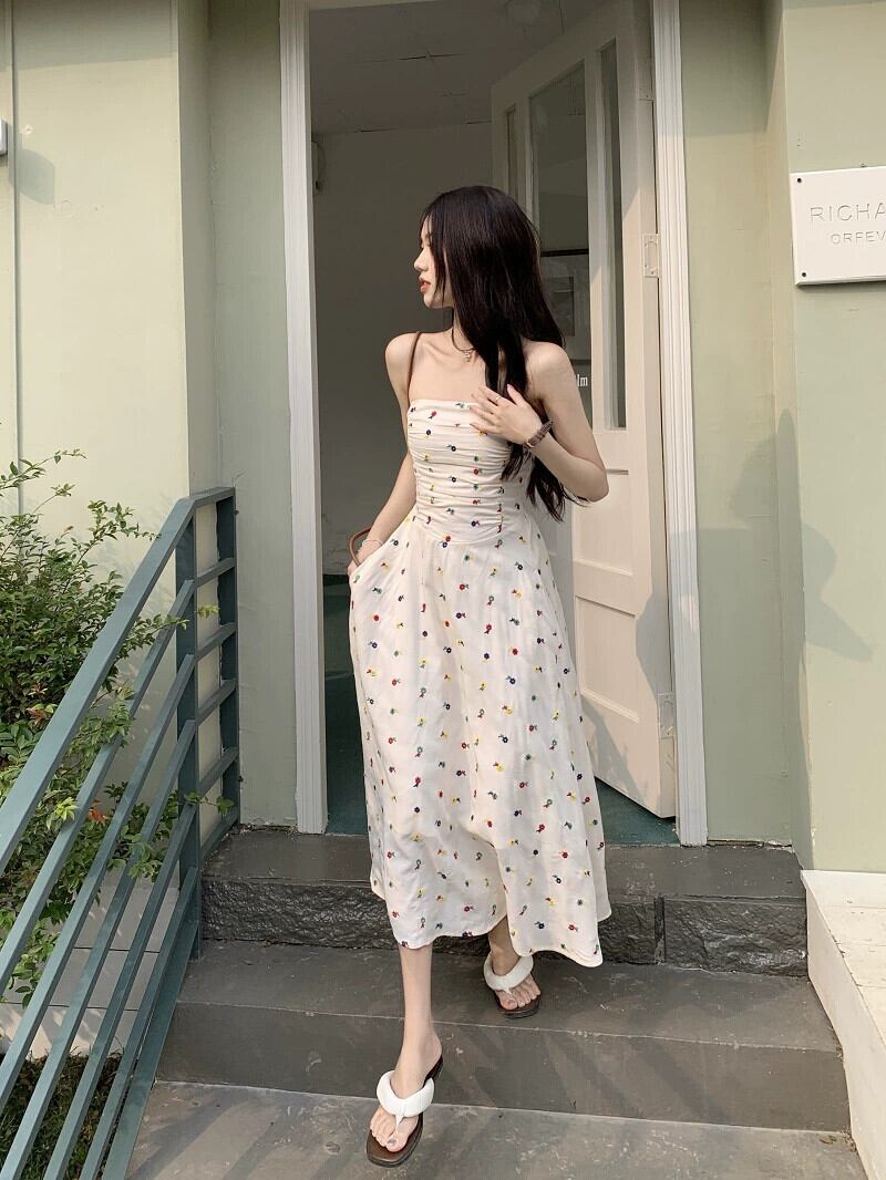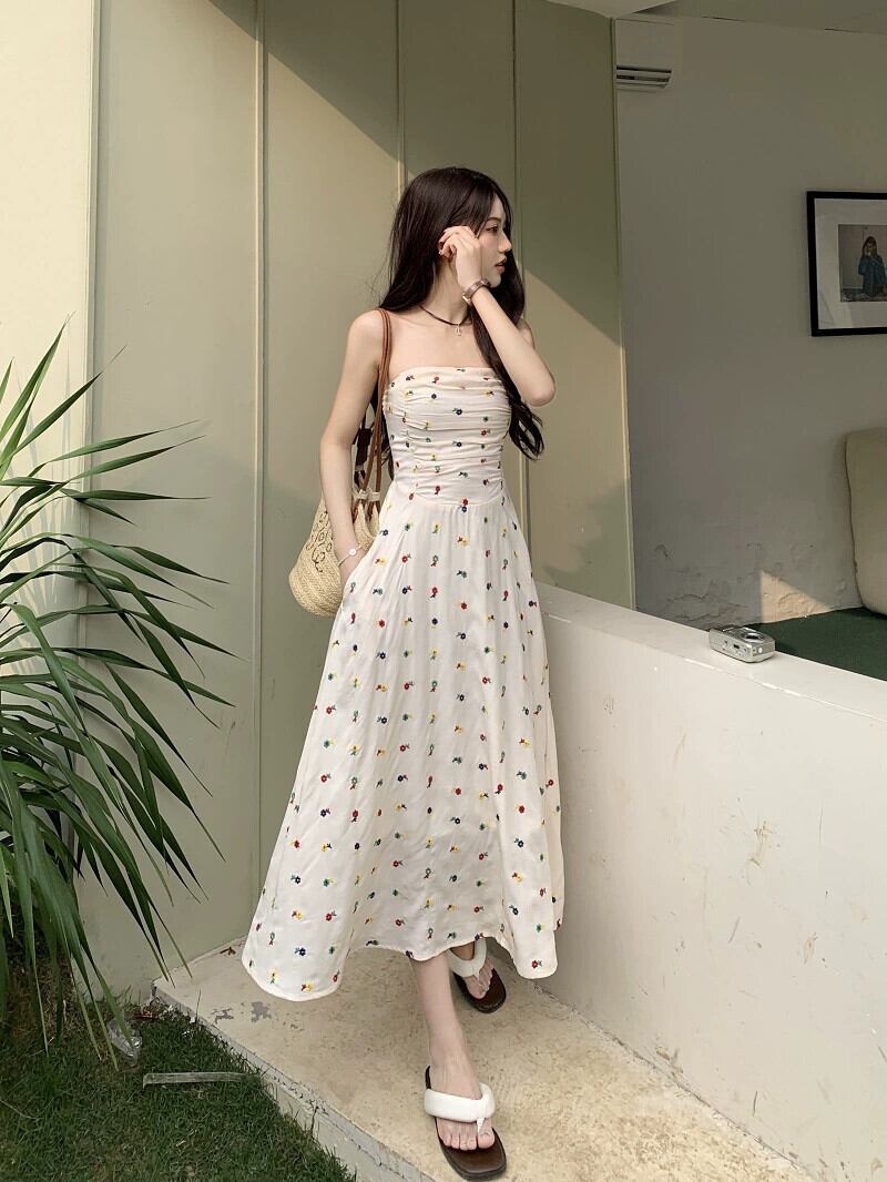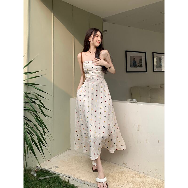 花柄チューブトップドレス婦人服夏2023新しいウエスト痩身ミッドレングスプリーツ気質ノースリーブスカート サマー 夏物 missk68461407613