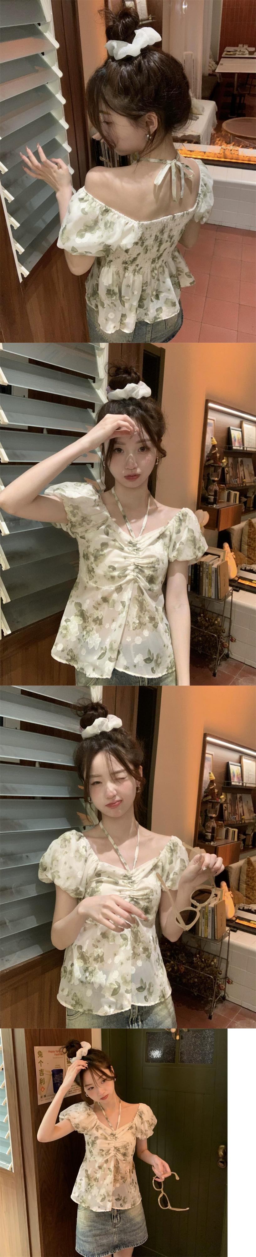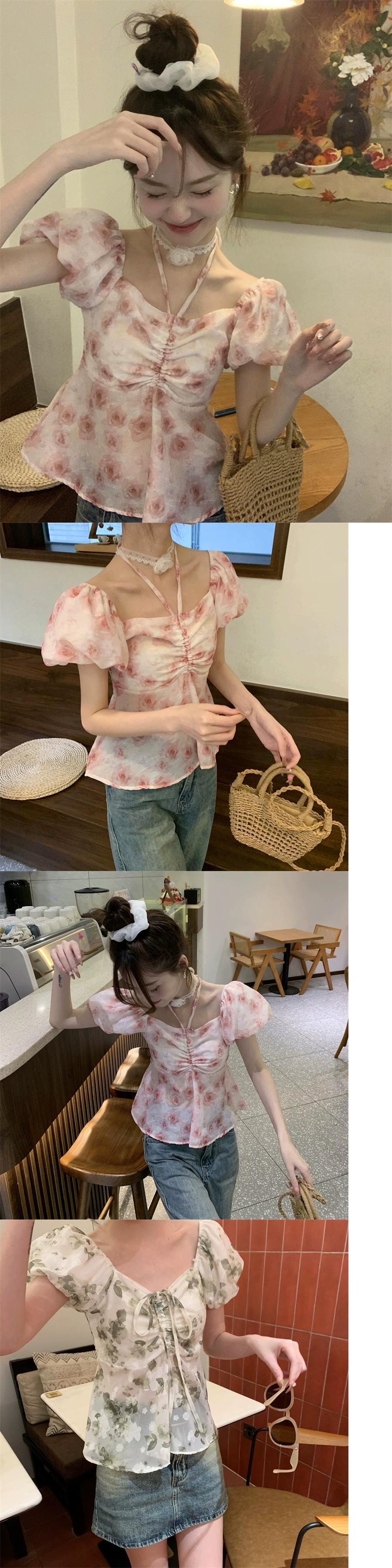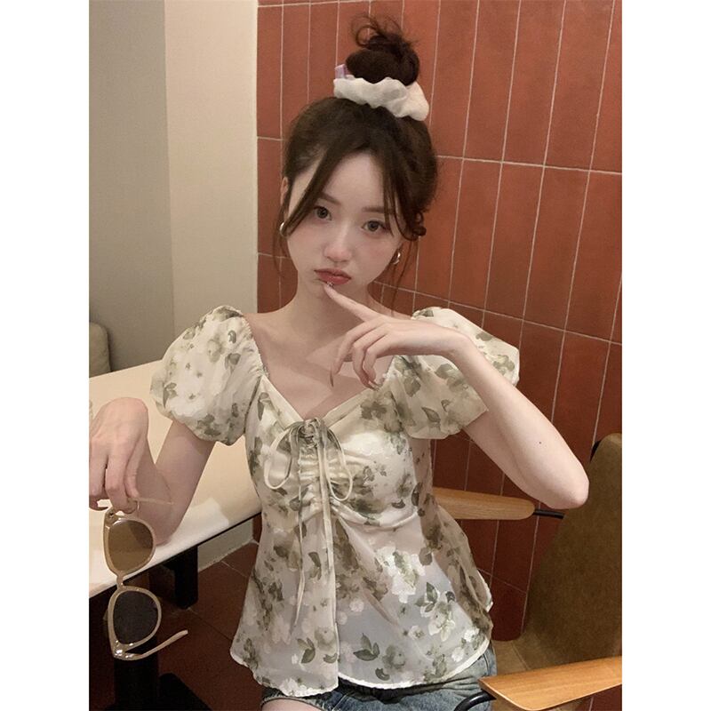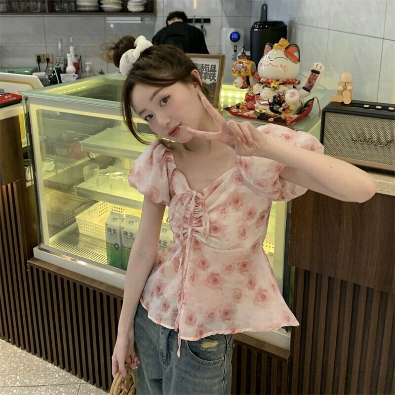 甘い泡半袖シフォンシャツ夏小さな新鮮な新しい花の気質Vネックトップシックな潮流 大人ガーリー スウィート キュート カジュアル サマー 夏物 花柄 missk49207035228