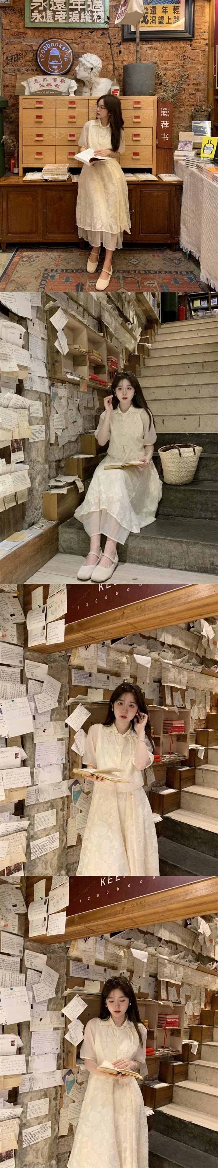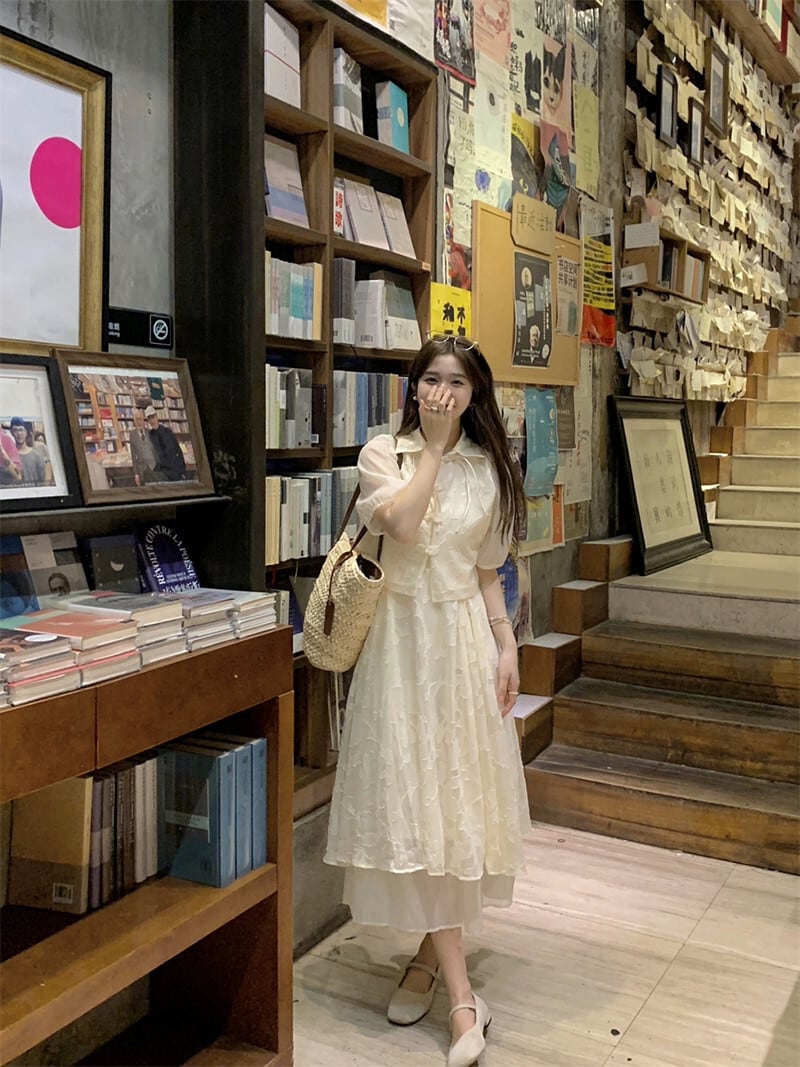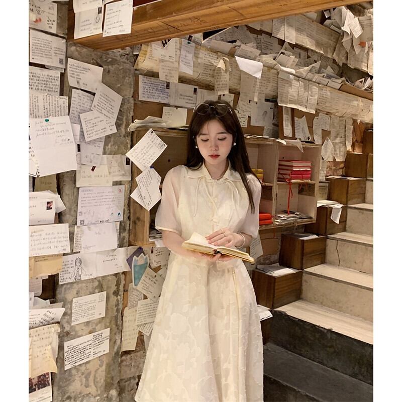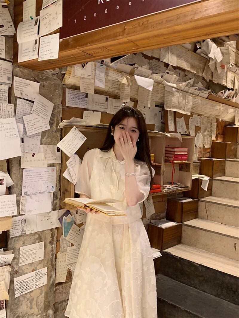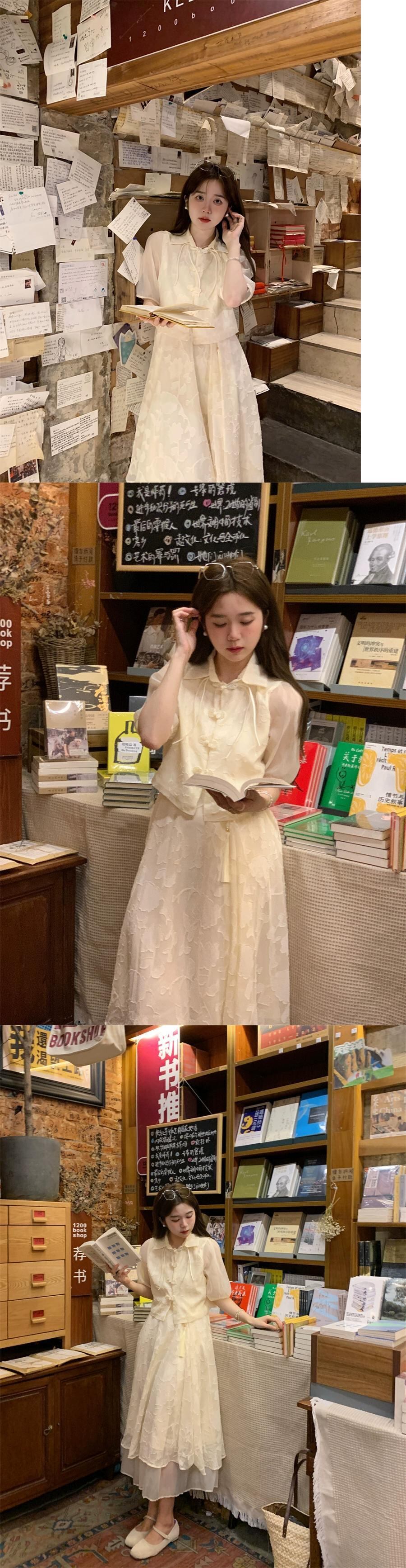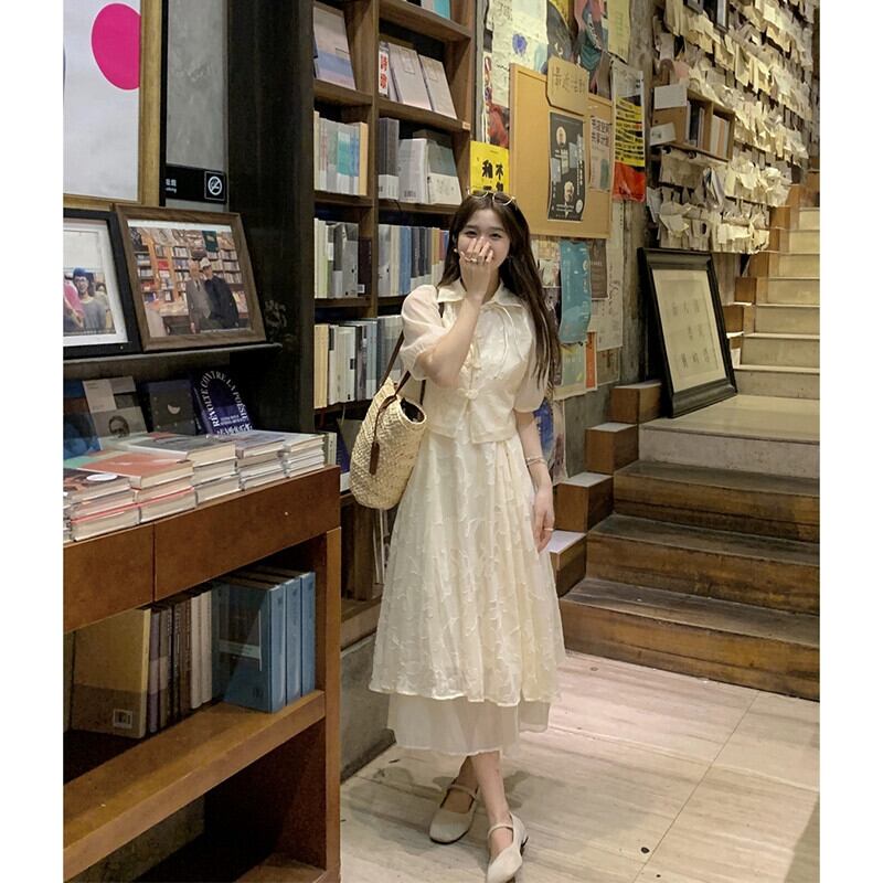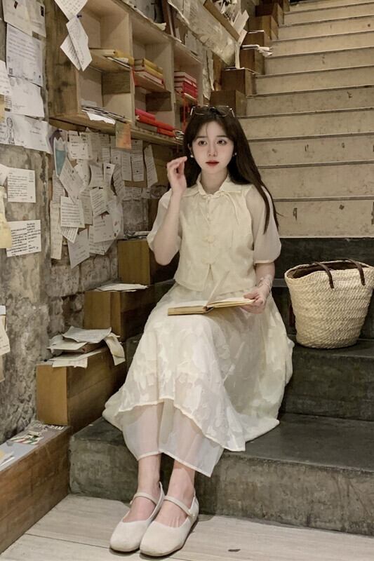 2023 夏の新国民風中国風改良された軽くて多用途なバックルトップ + ジャカードサスペンダースカート 2 点セット女性 サマー 夏物 missk9549478036