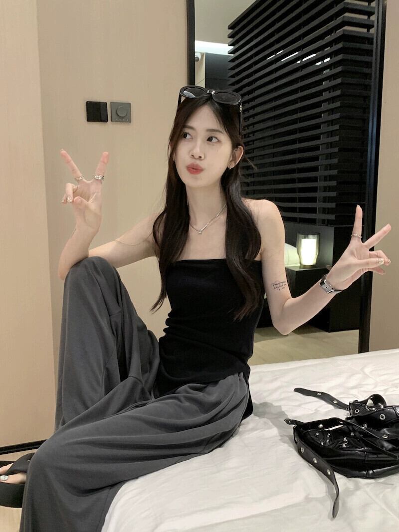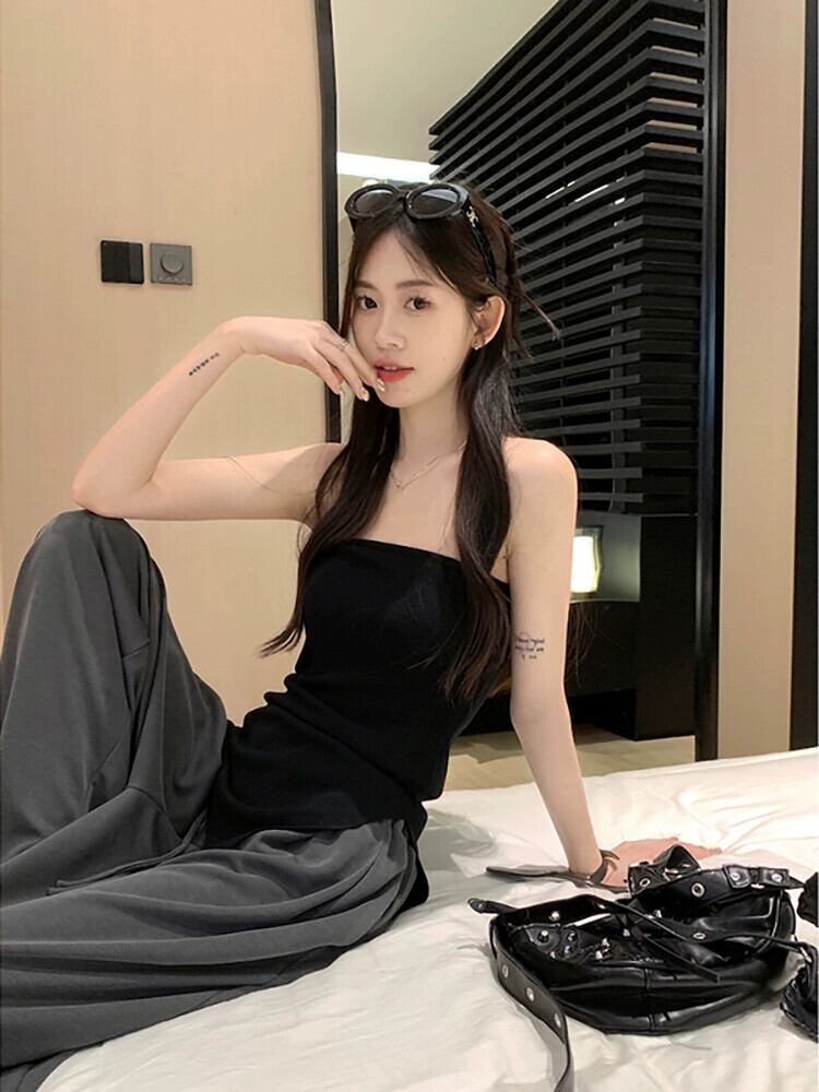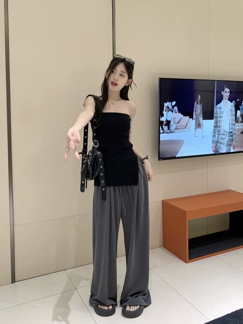 ホットセクシーなアウターウェア不規則なスリットチューブトップベストワイドレッグパンツ女性の夏の 2023 新しいファッションツーピースセット サマー 夏物 missk94960262684