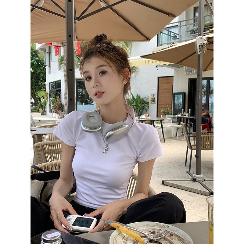 スパイスガールズショートアウターフロントショルダー Tシャツ夏 BM スタイル白スリム半袖ボトムシャツトップス婦人服イン ホワイト サマー 夏物 missk87907485752