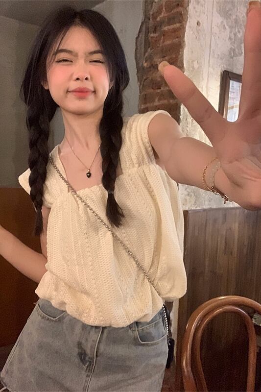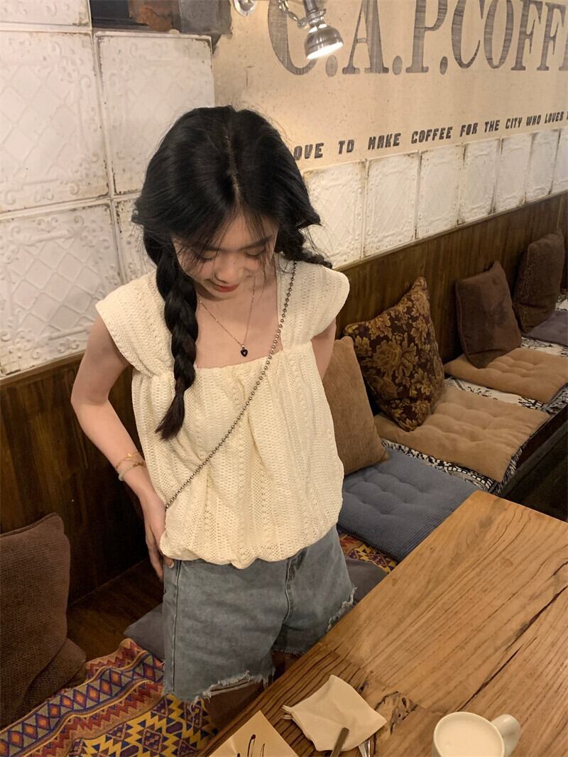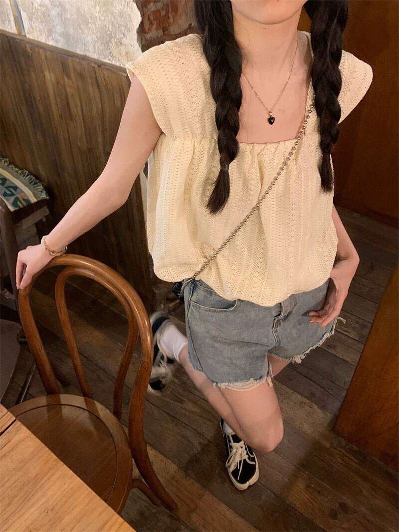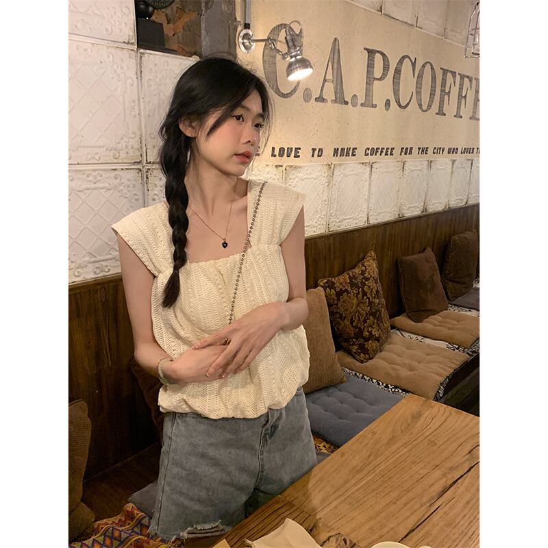 甘いスクエアカラーフックフラワーキャミソールレディース2023年夏新デザイン着痩せ感と年齢軽減ショートドールシャツ 大人ガーリー スウィート キュート カジュアル サマー 夏物 フラワーデザイン スクウェア missk28462986079