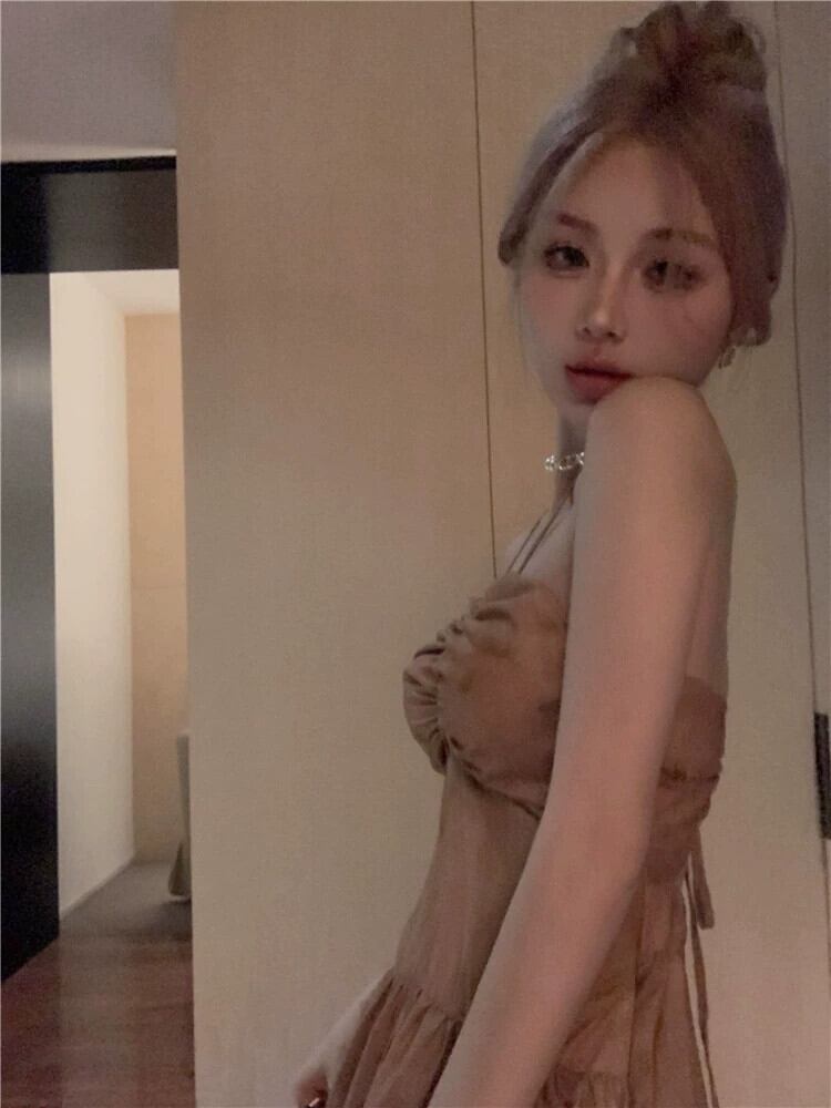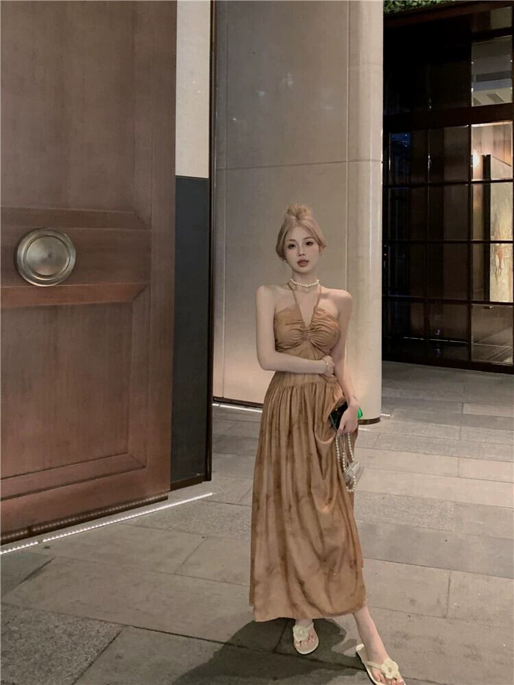 フレンチライト調理スタイルセクシーなティーブレイクドレス夏の気質Vネックネクタイウエストウエストホルターサスペンダースカートイン女性 サマー 夏物 missk91315349755
