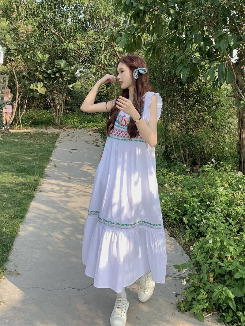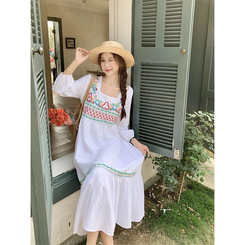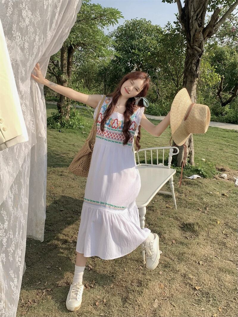 エスニック スタイル デザイン センス コットン リネン刺繍ドレス夏の新しい休日 eign スタイルのシックなミドル丈スカート女性 ins 潮 レッド サマー 夏物 missk73501403939