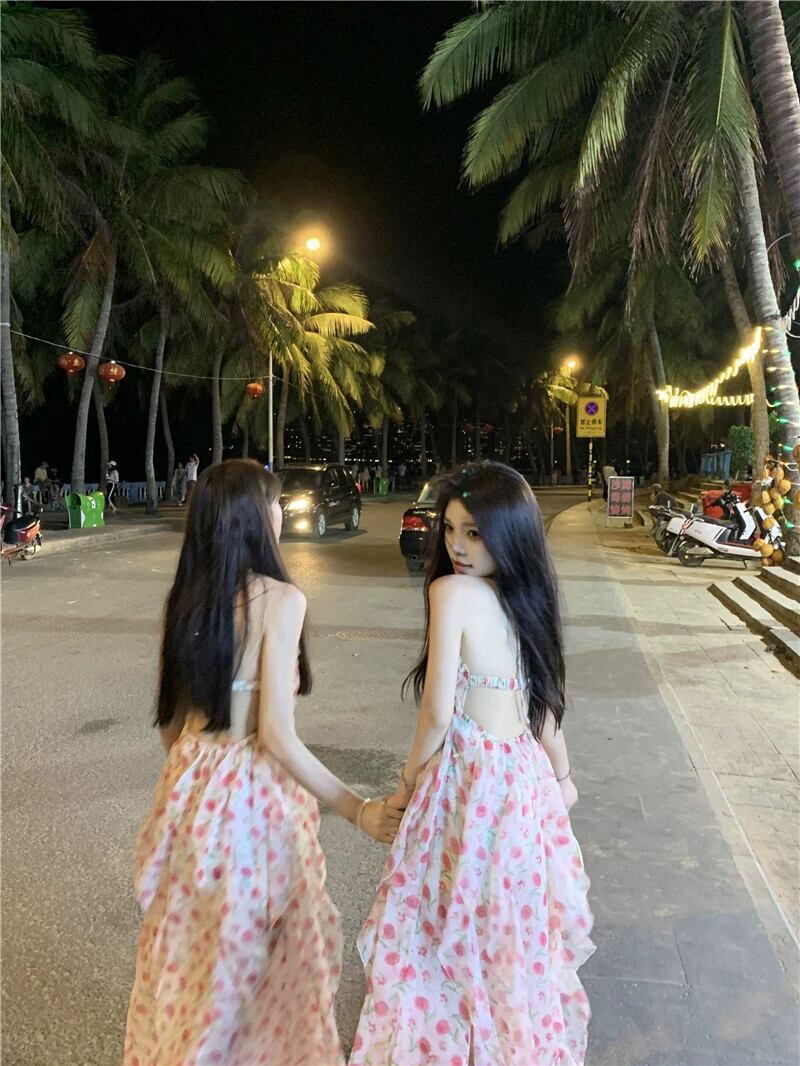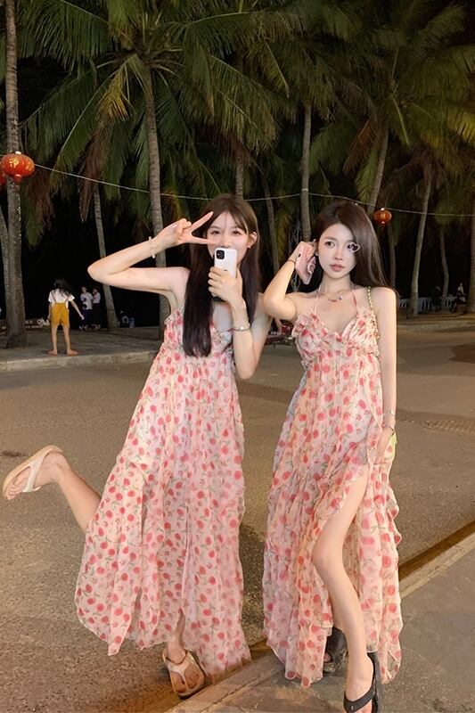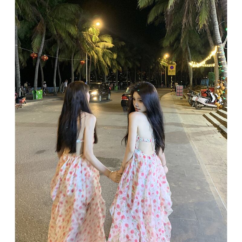 休暇スタイルホルターネックドレス夏の新しい友人ファッションスリットバックレス花柄ドレス女性のシックな潮 サマー 夏物 missk73364733170