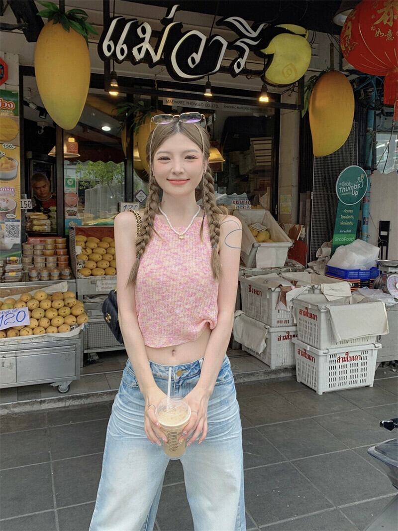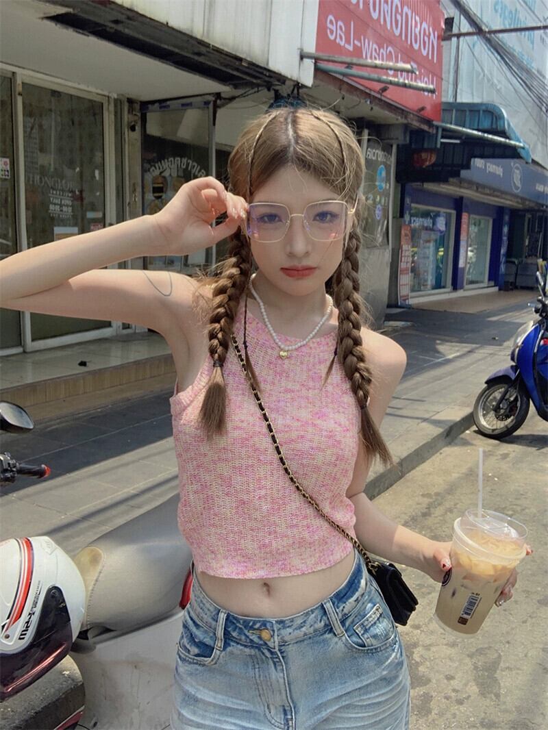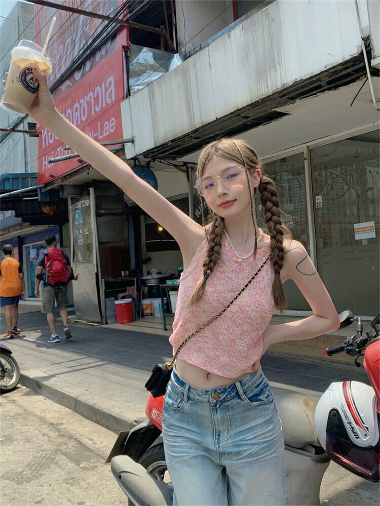 Sweet Babes オフショルダー ショート ニット キャミソール レディース 夏の新しいスタイル アウター 痩身デザイン トップス 大人ガーリー スウィート キュート カジュアル サマー 夏物 missk66209462254