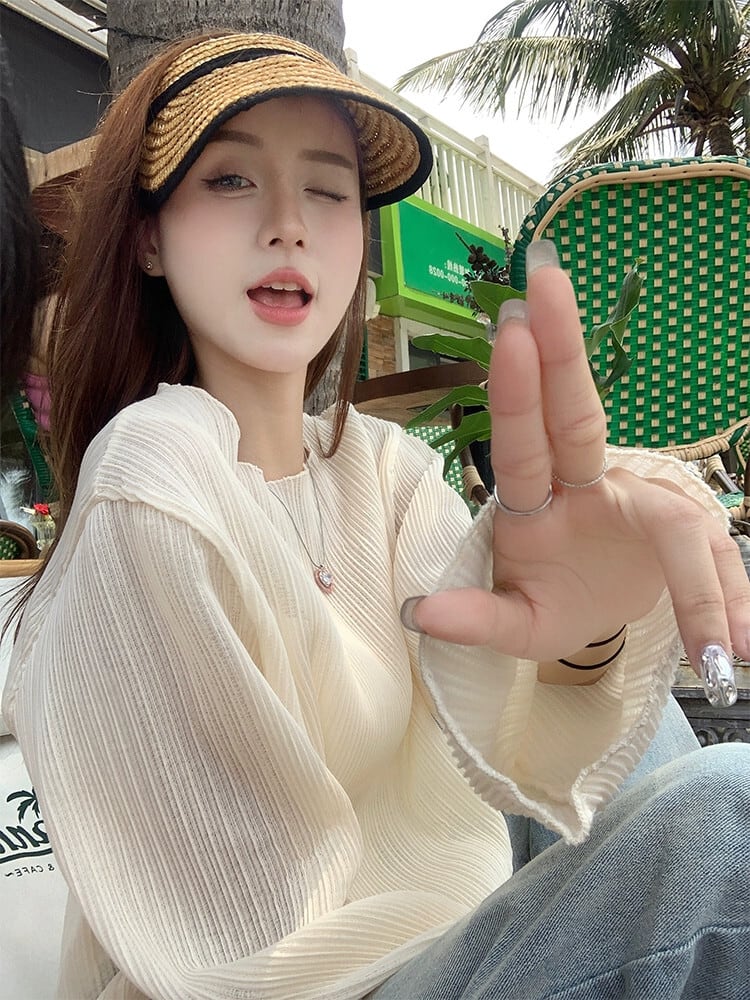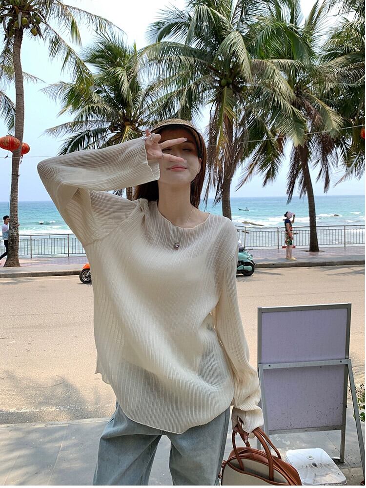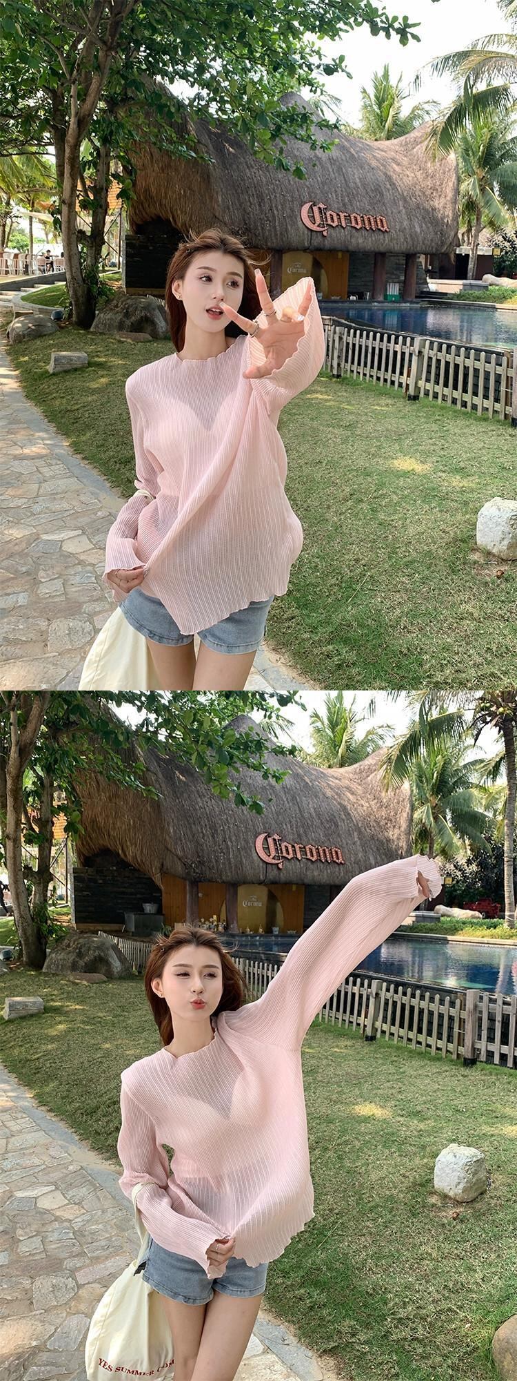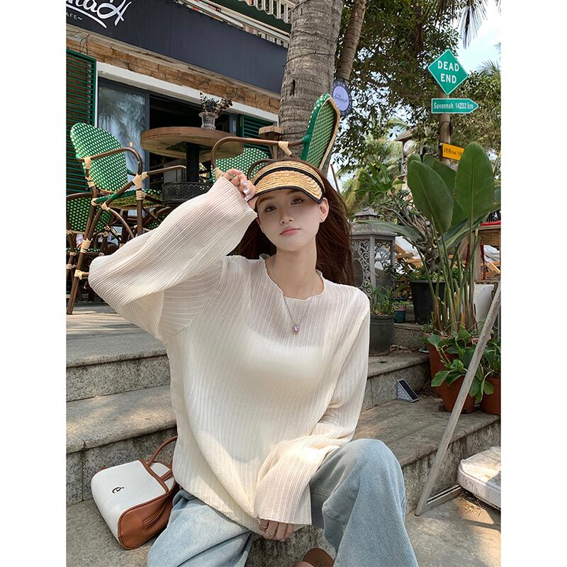 微透明日焼け止め女性の夏バージョン 2023 新しい薄セクションデザインセンスニッチプリーツルーズ長袖シフォンシャツ ロング サマー 夏物 missk86516318577