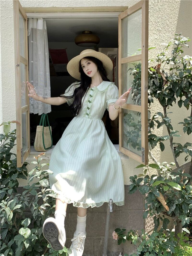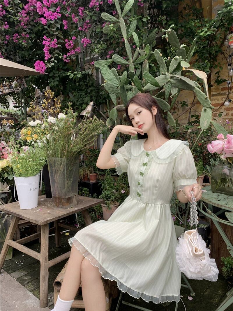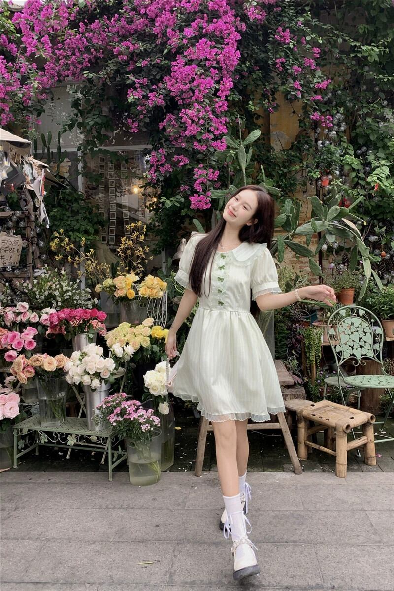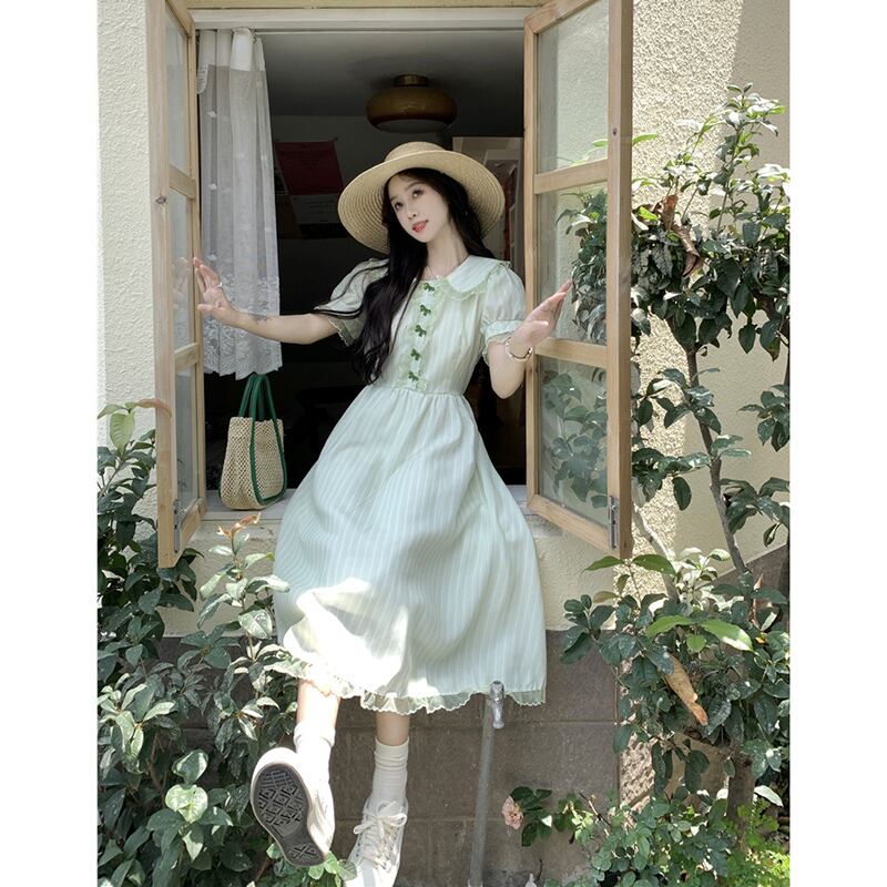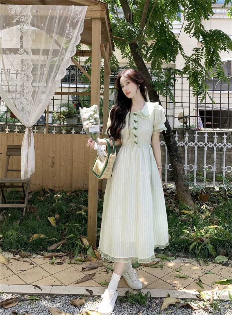 ドールカラー初恋ドレス女性の夏 2023 新しい小さな新鮮なフレンチウエストスリムパフスリーブ A ラインスカート サマー 夏物 Aライン missk43741228205