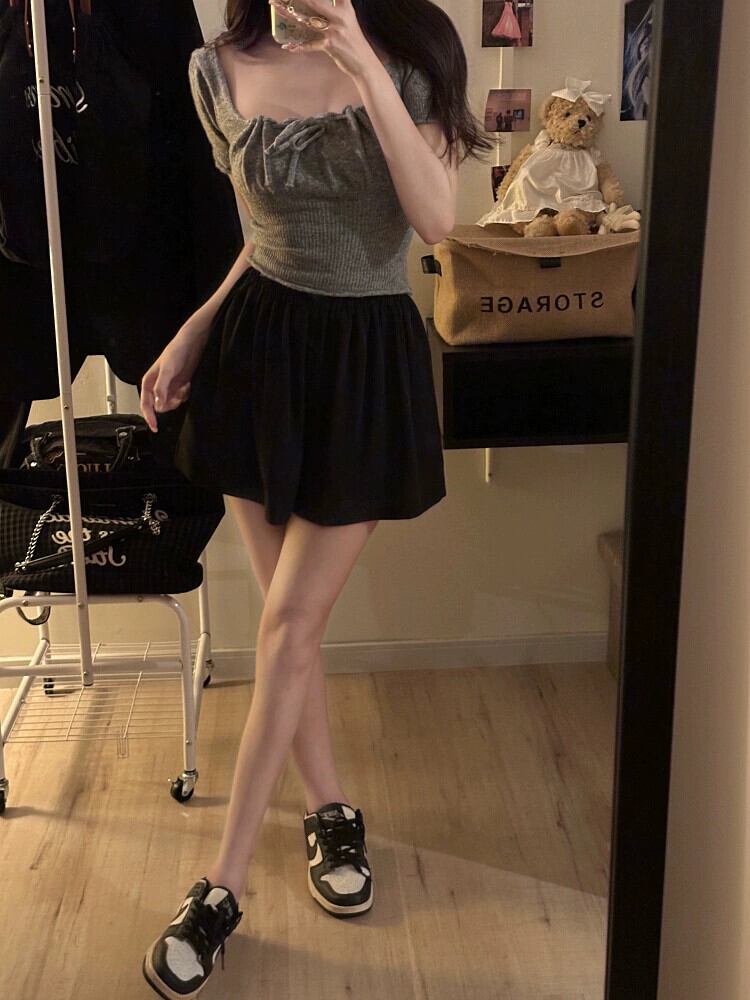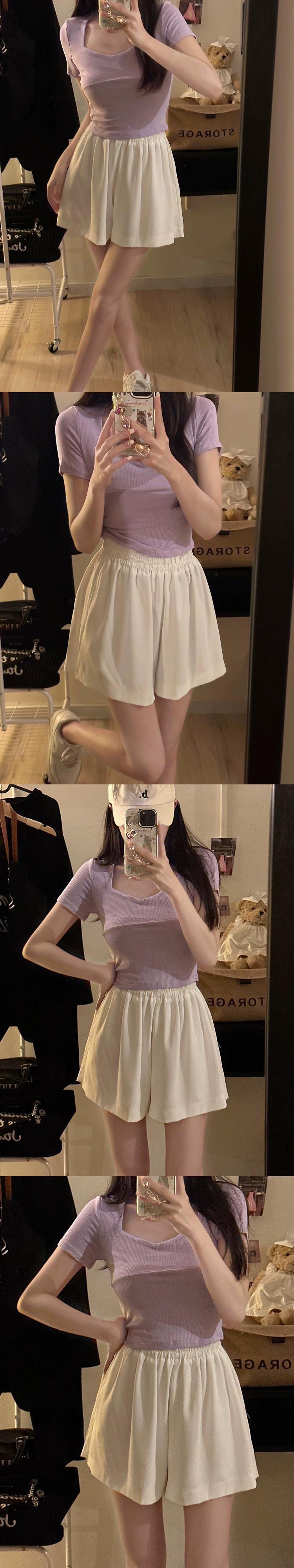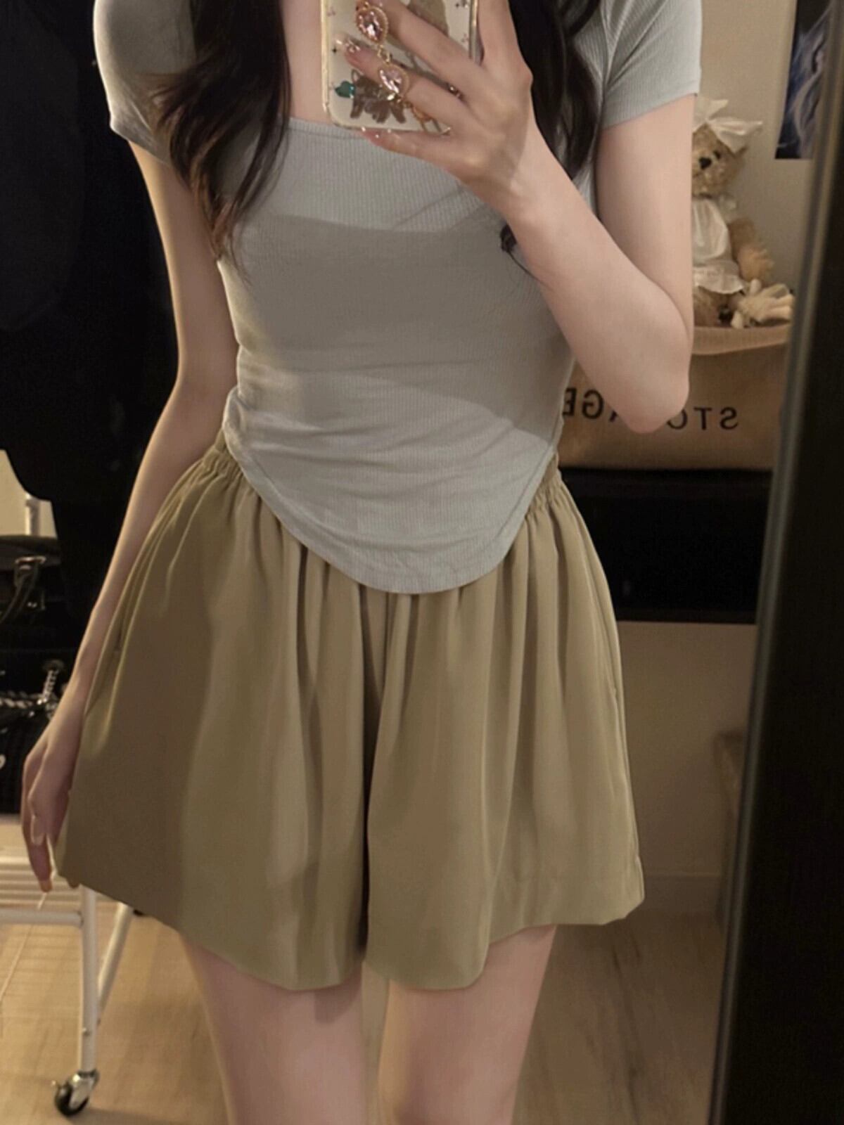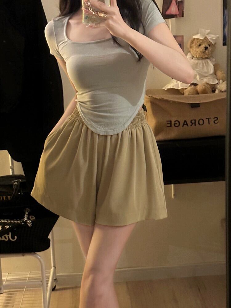 ワイドレッグショーツレディース2023夏新作ハイウエスト痩身オールマッチソリッドカラーベーシック伸縮性ウエストカジュアルパンツ エラスティック サマー 夏物 ブルマー missk76578188534