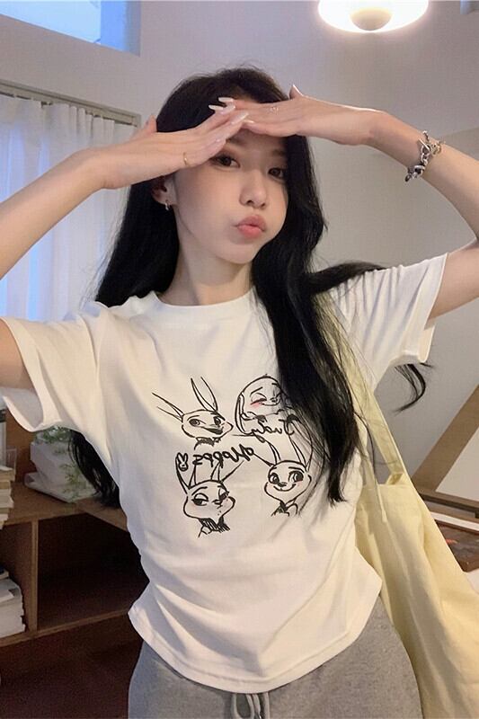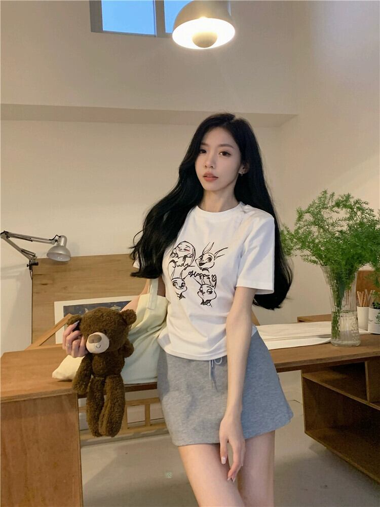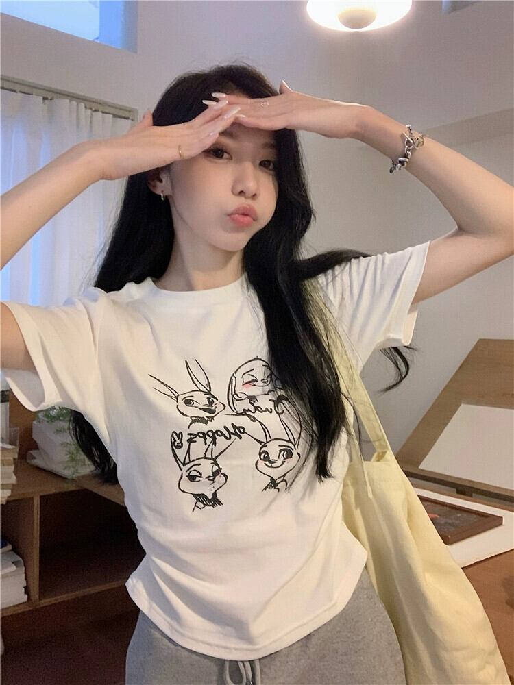 ホワイト Tシャツ レディース 夏バージョン 2023 新しい漫画プリントウエスト痩身デザインセンスオールマッチショートトップ サマー 夏物 missk64740333614