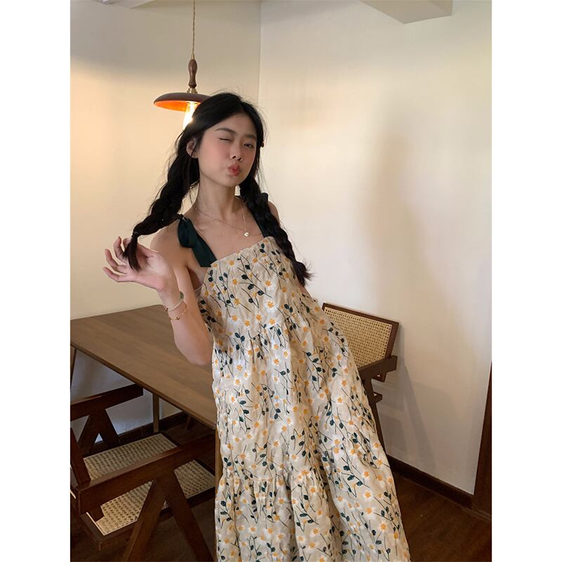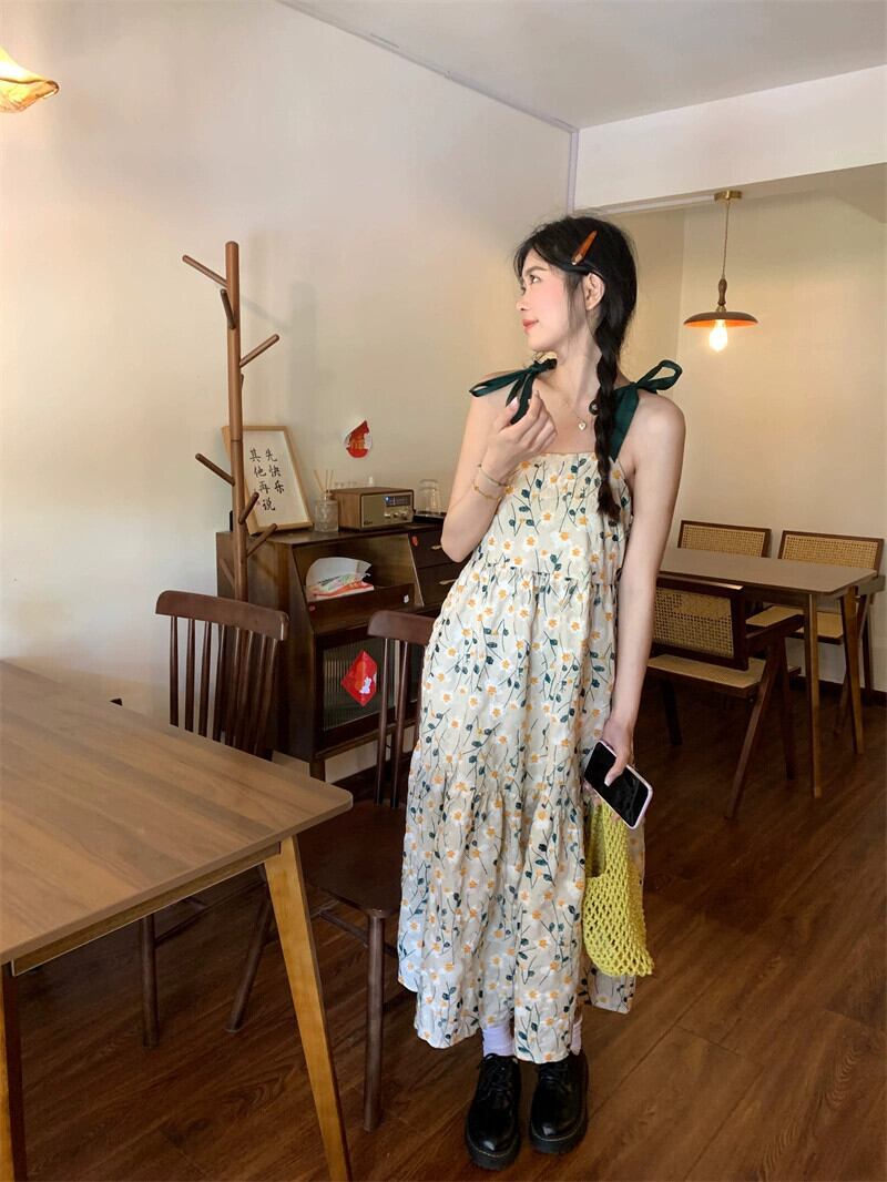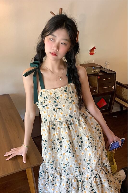 小さな新鮮な花柄スリングドレスの女性の夏の 2023 新しいウエストライン痩身ミッドレングス刺繍 est スカート サマー 夏物 missk62393138459