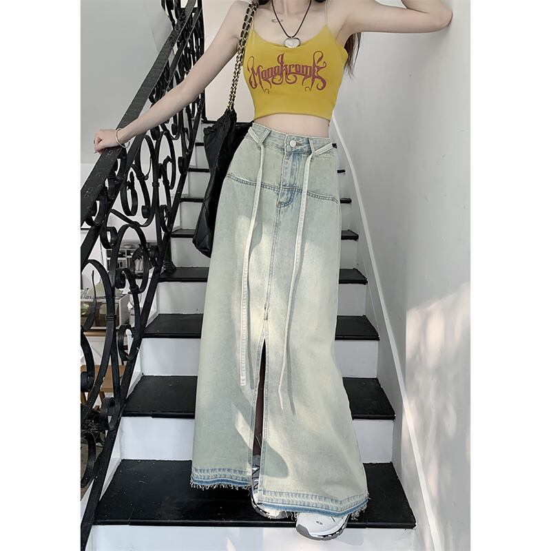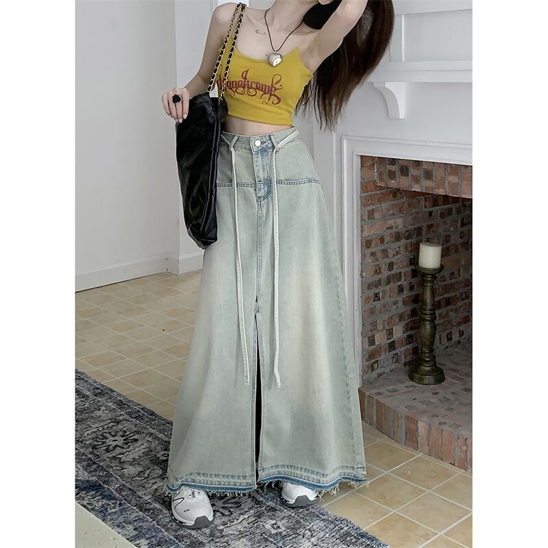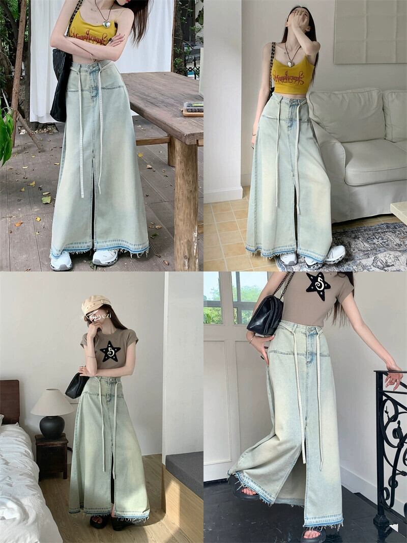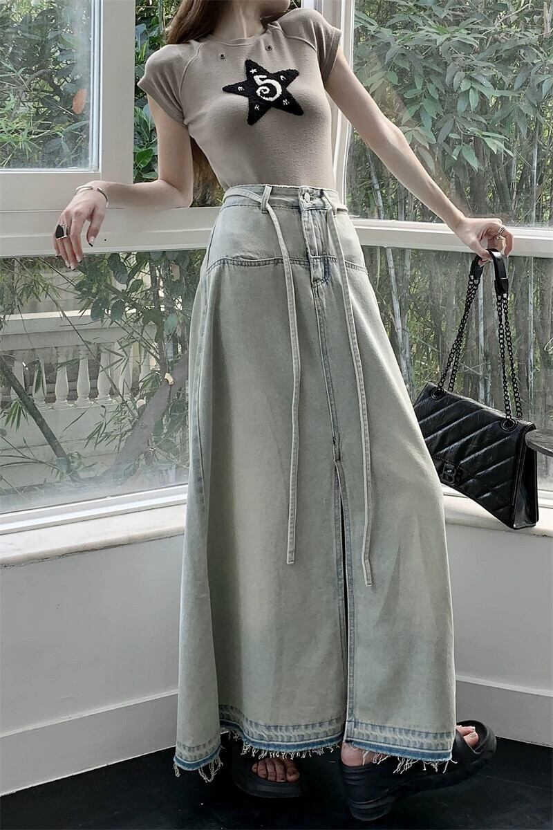 夏バージョン 2023 新作ハイウエストルーズ A ラインスカートデニムロングスカートスリットファーエッジスカートレディーススカート ハイウェスト サマー 夏物 Aライン missk52555693147