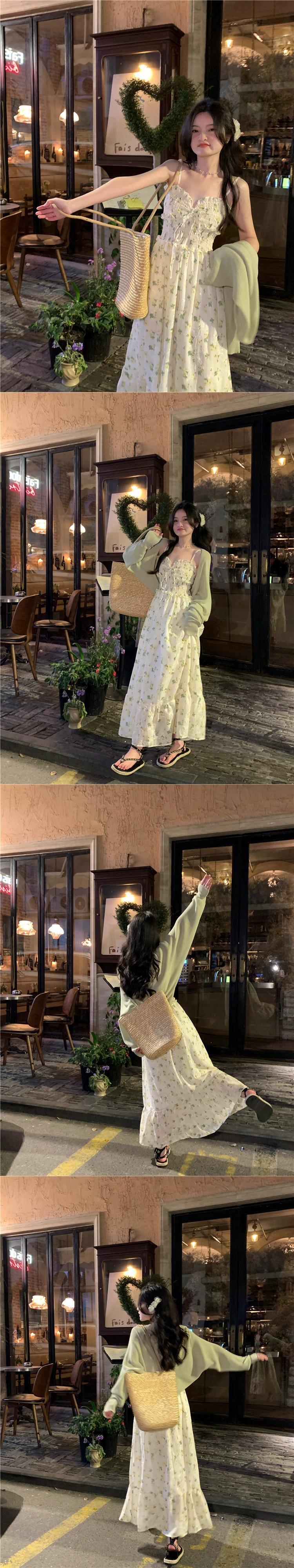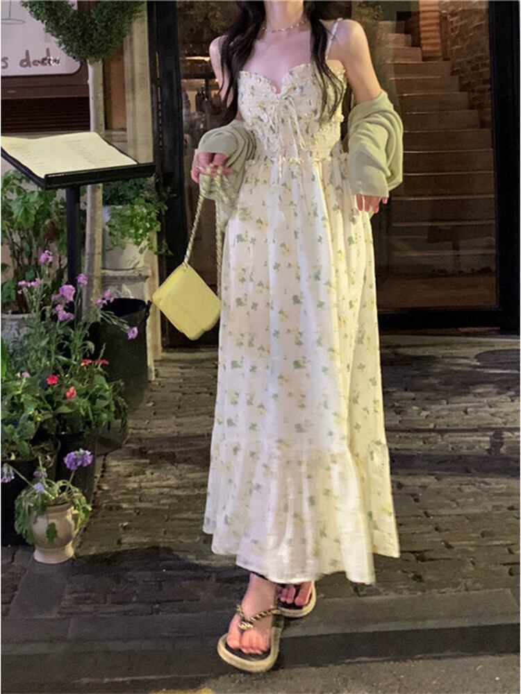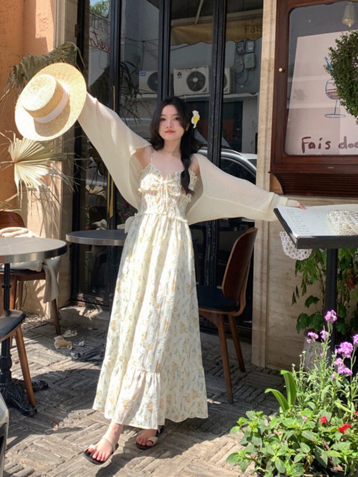 優しい風の花サスペンダードレス夏 2023 新しいスタイルウエスト痩身ミッドレングスデザインセンス妖精スカート サマー 夏物 花柄 missk38840299078