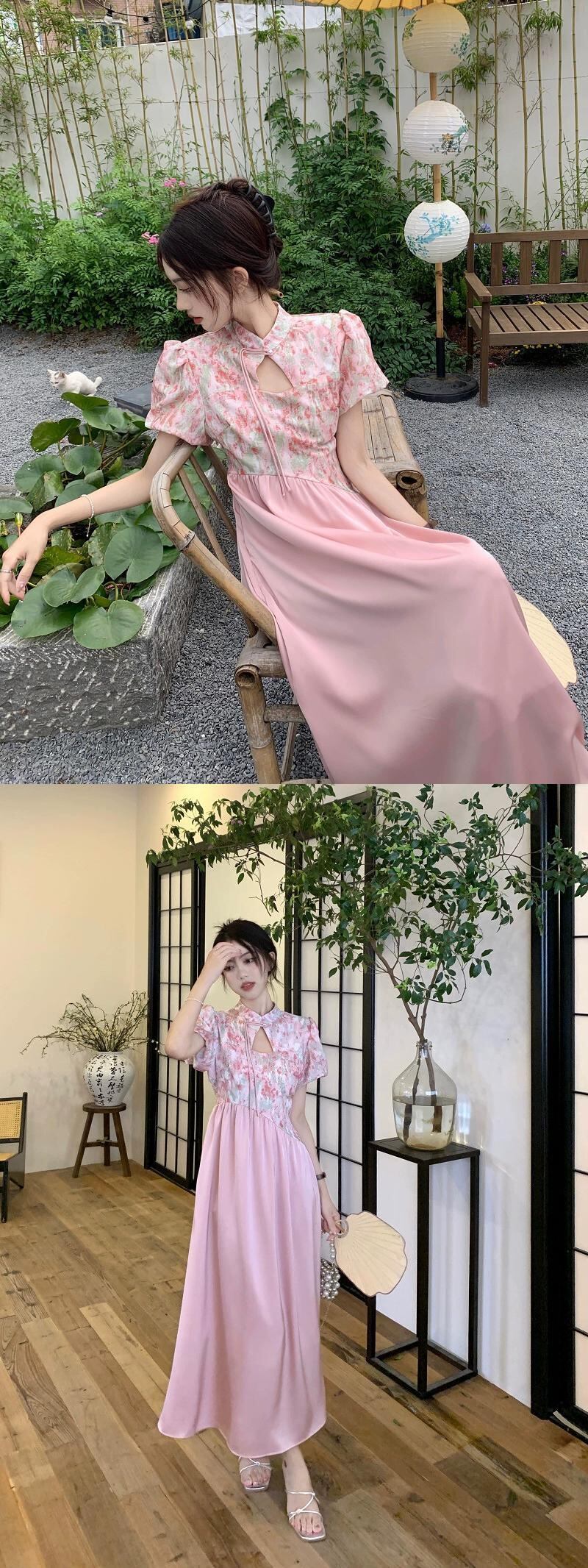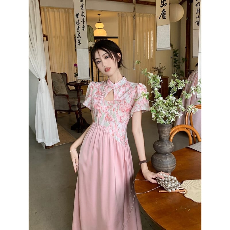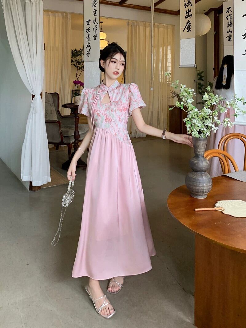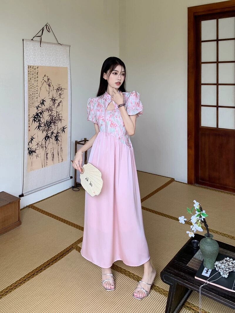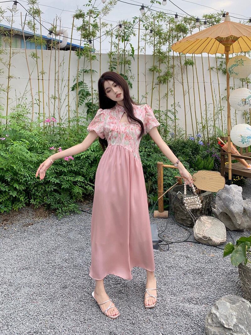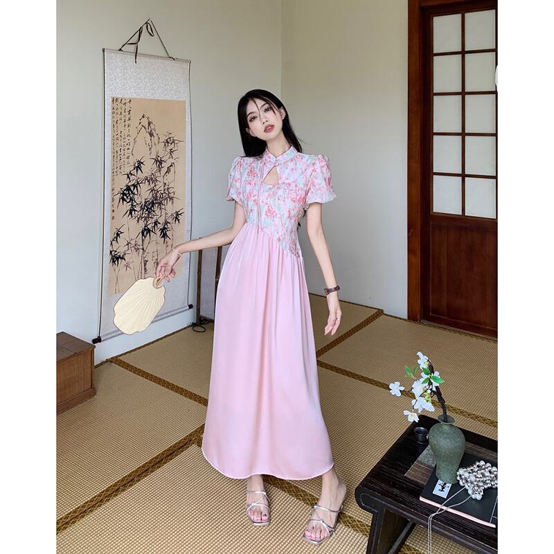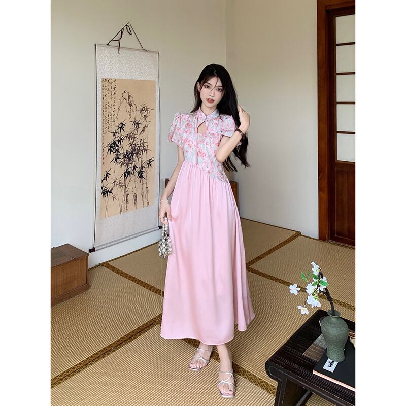 中国風のハイエンド花柄ドレスの女性の夏の 2023 新しいスプライシングデザインセンスウエストウエスト痩身ロングスカート サマー 夏物 missk33024385107