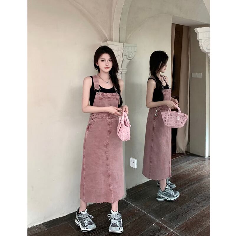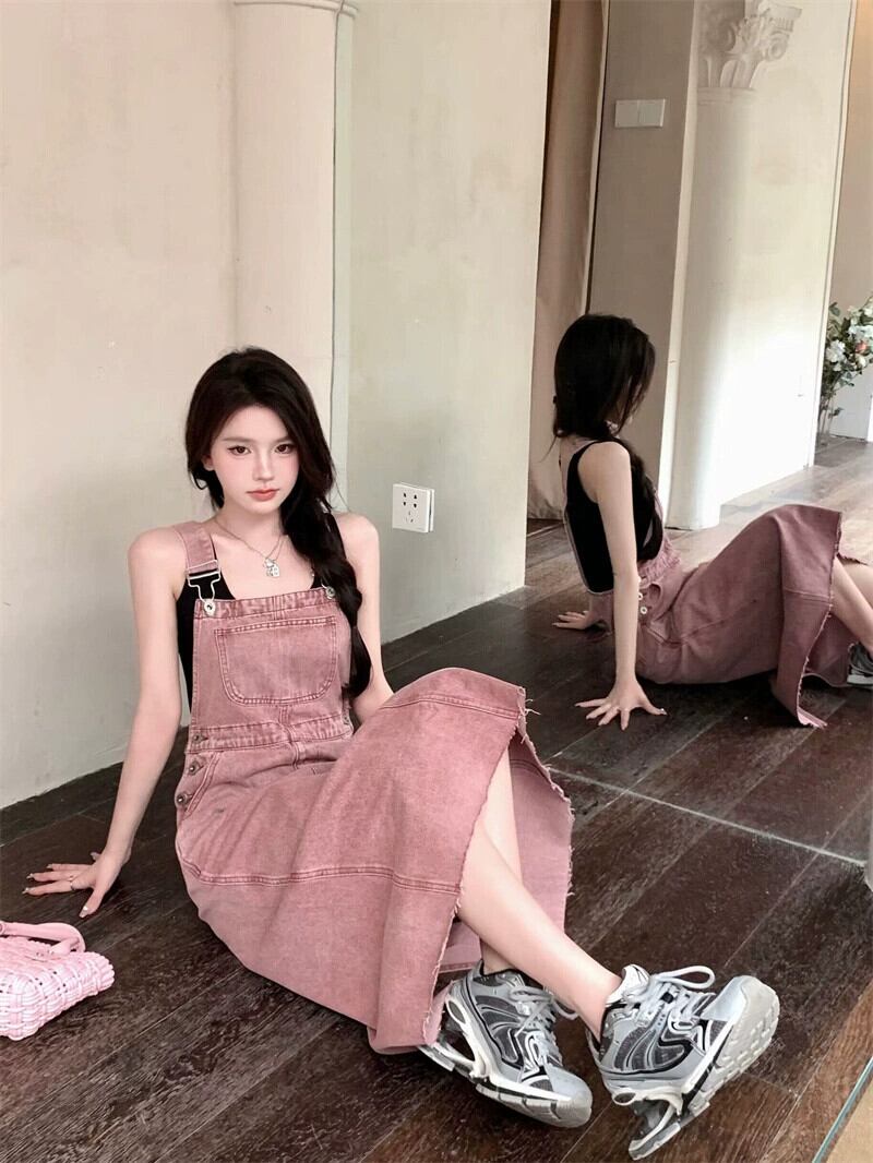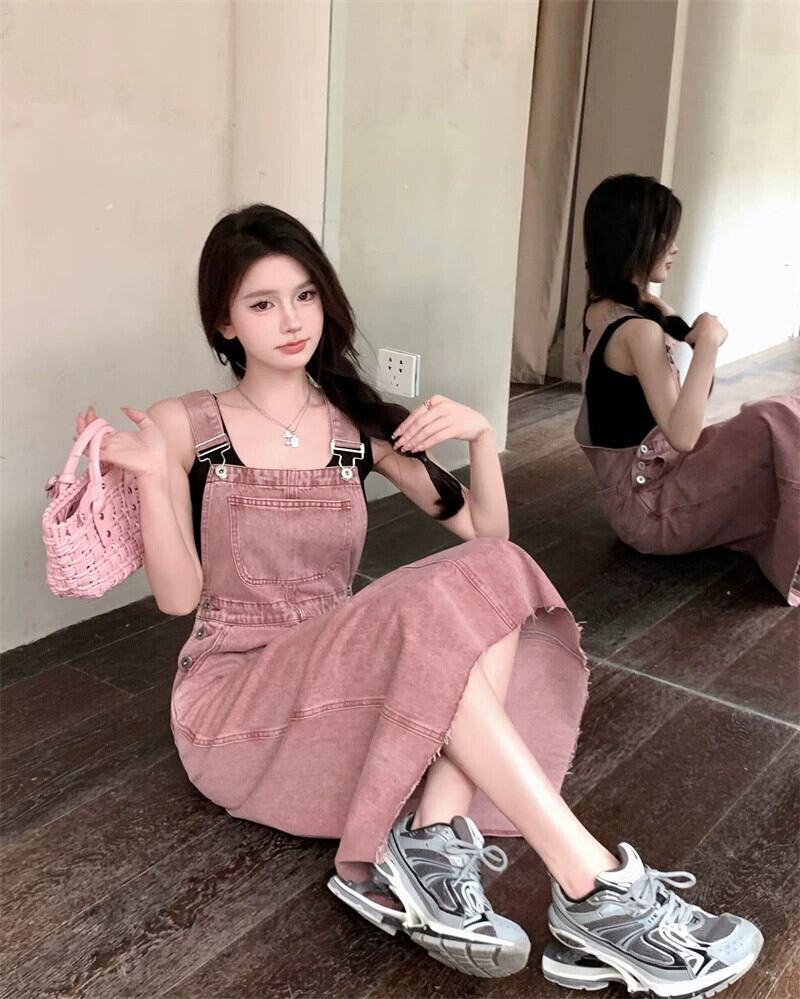 デニムサスペンダードレスレディース2023夏新スタイルウエスト痩身ミッドレングス生エッジデザイン甘くてクールなスカート 大人ガーリー スウィート キュート カジュアル サマー 夏物 missk18191230153