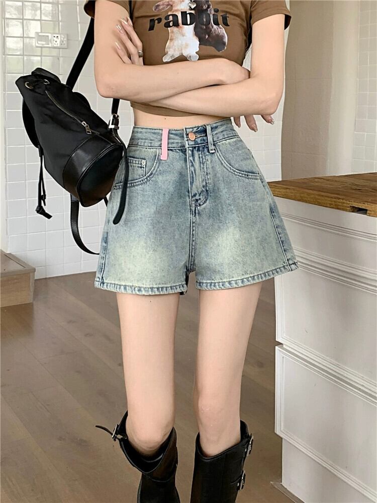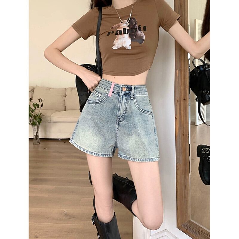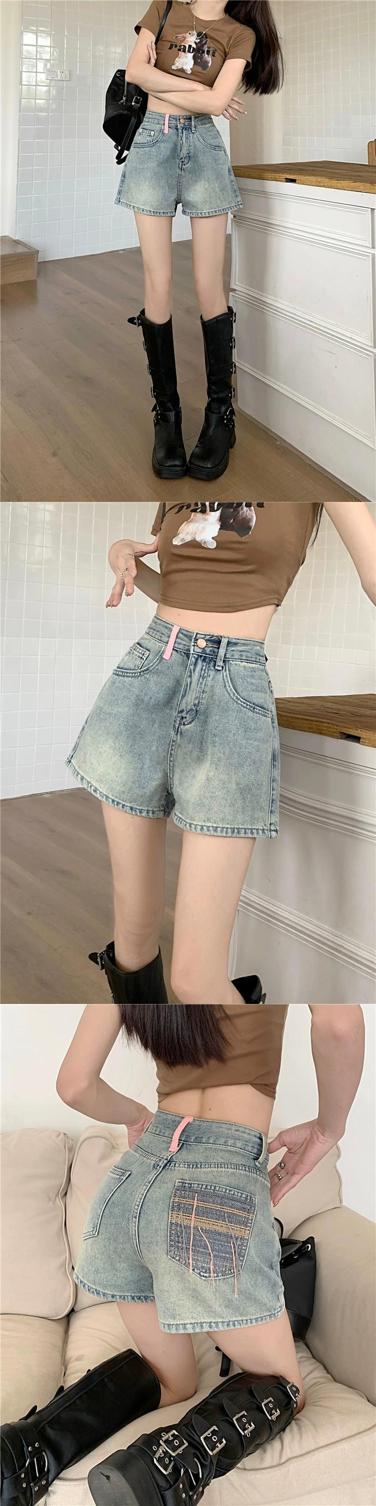 レトロハイウエストデニムショートパンツレディース2023夏新デザインセンス刺繍テルワイドレッグパンツパンツ ハイウェスト サマー 夏物 ショーツ ブルマー ワイドパンツ missk52383844275