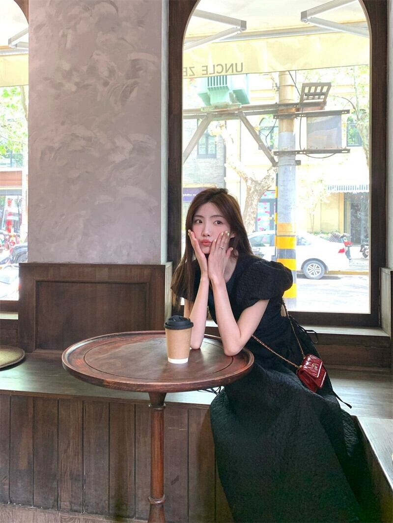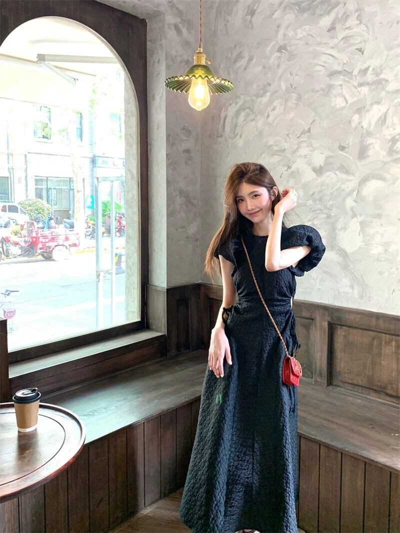 ヘップバーンスタイルパフスリーブドレス女性の夏の 2023 新しいフレンチスタイルニッチウエスト痩身ミッドレングススカート サマー 夏物 missk84802696680
