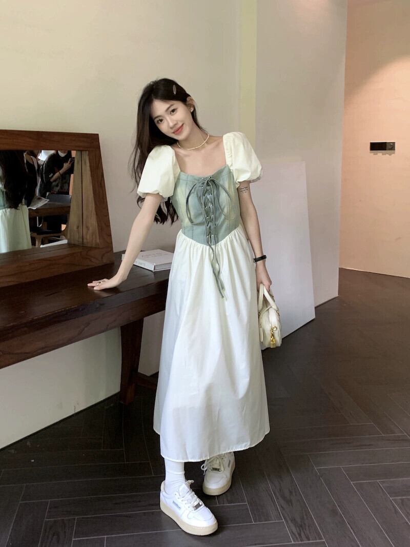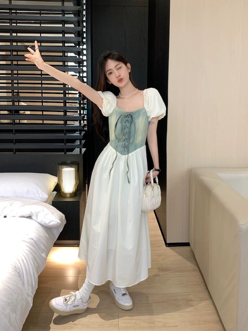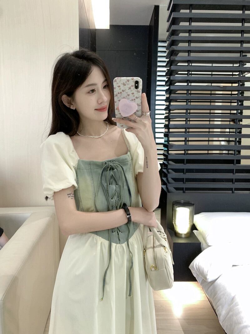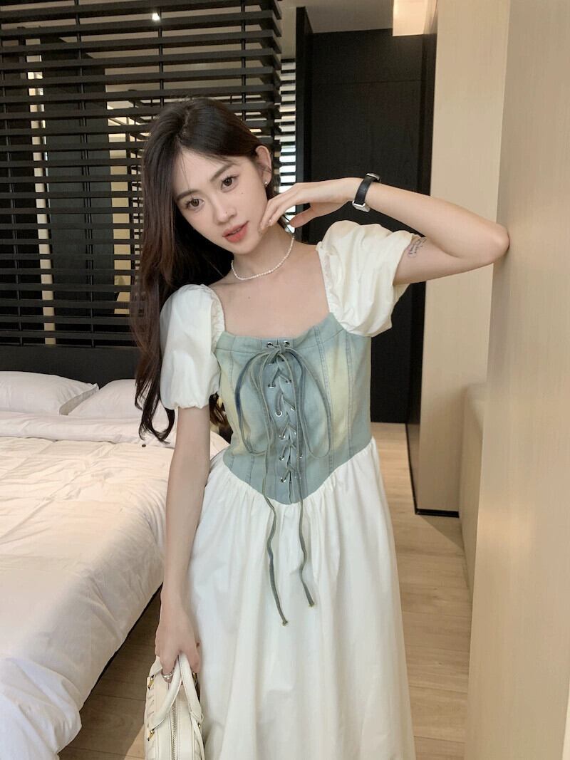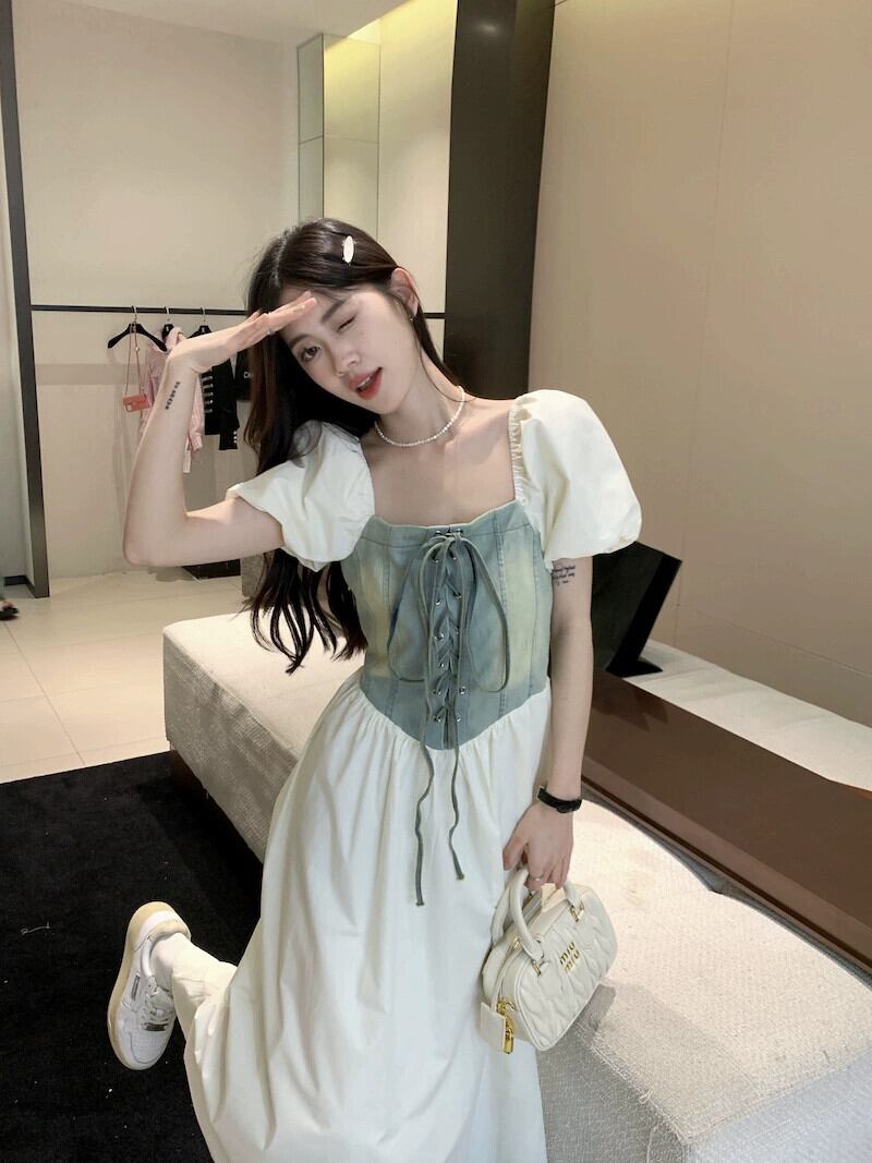 フレンチレトロデニムステッチドレス女性の夏の2023新しいウエスト痩身デザインミッドレングススカート サマー 夏物 missk85761044069